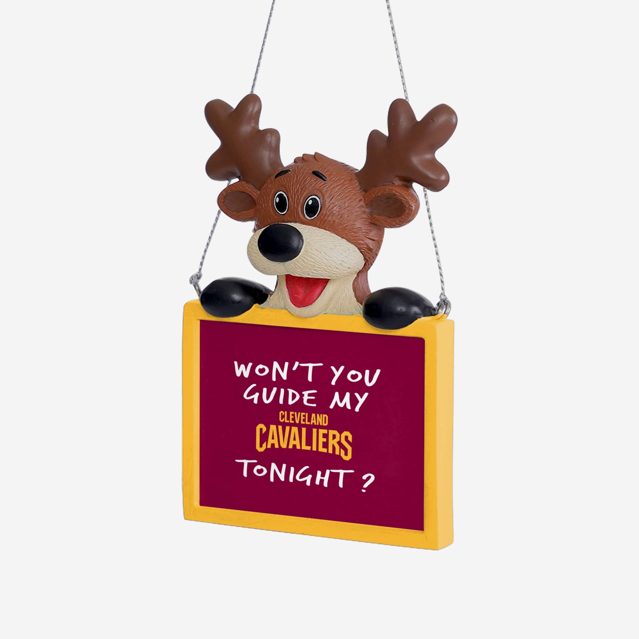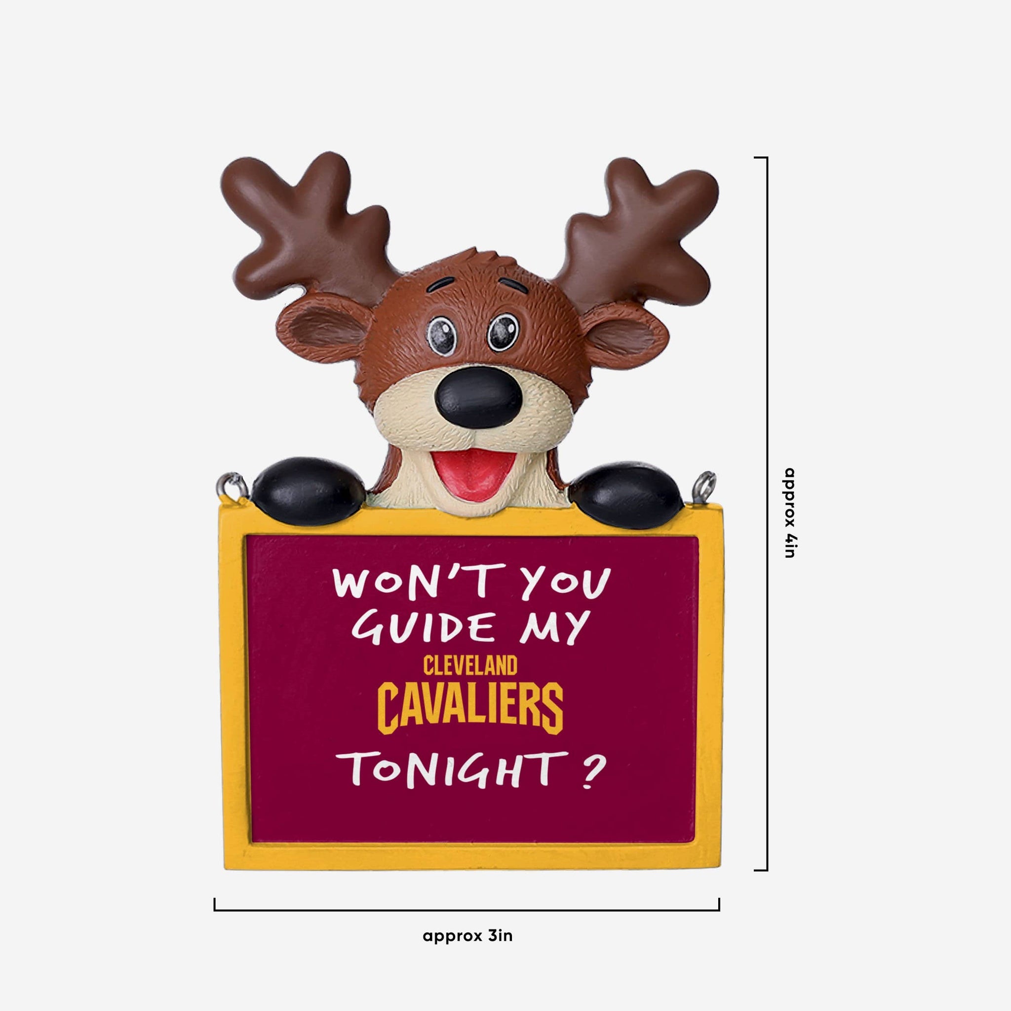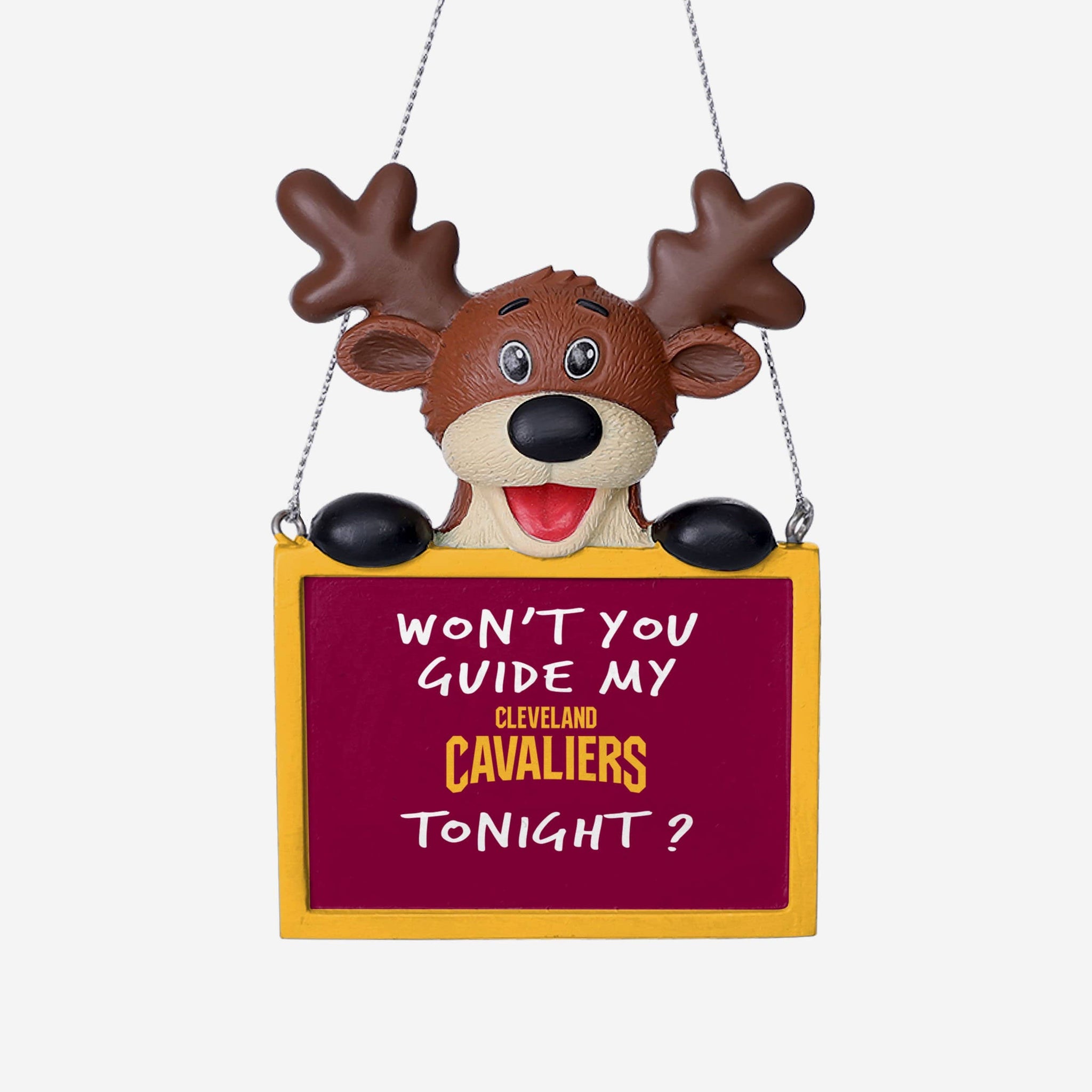 Tired: Dasher. Dancer. Prancer. Vixen. Wired: This Cleveland Cavaliers Reindeer with Sign Ornament.