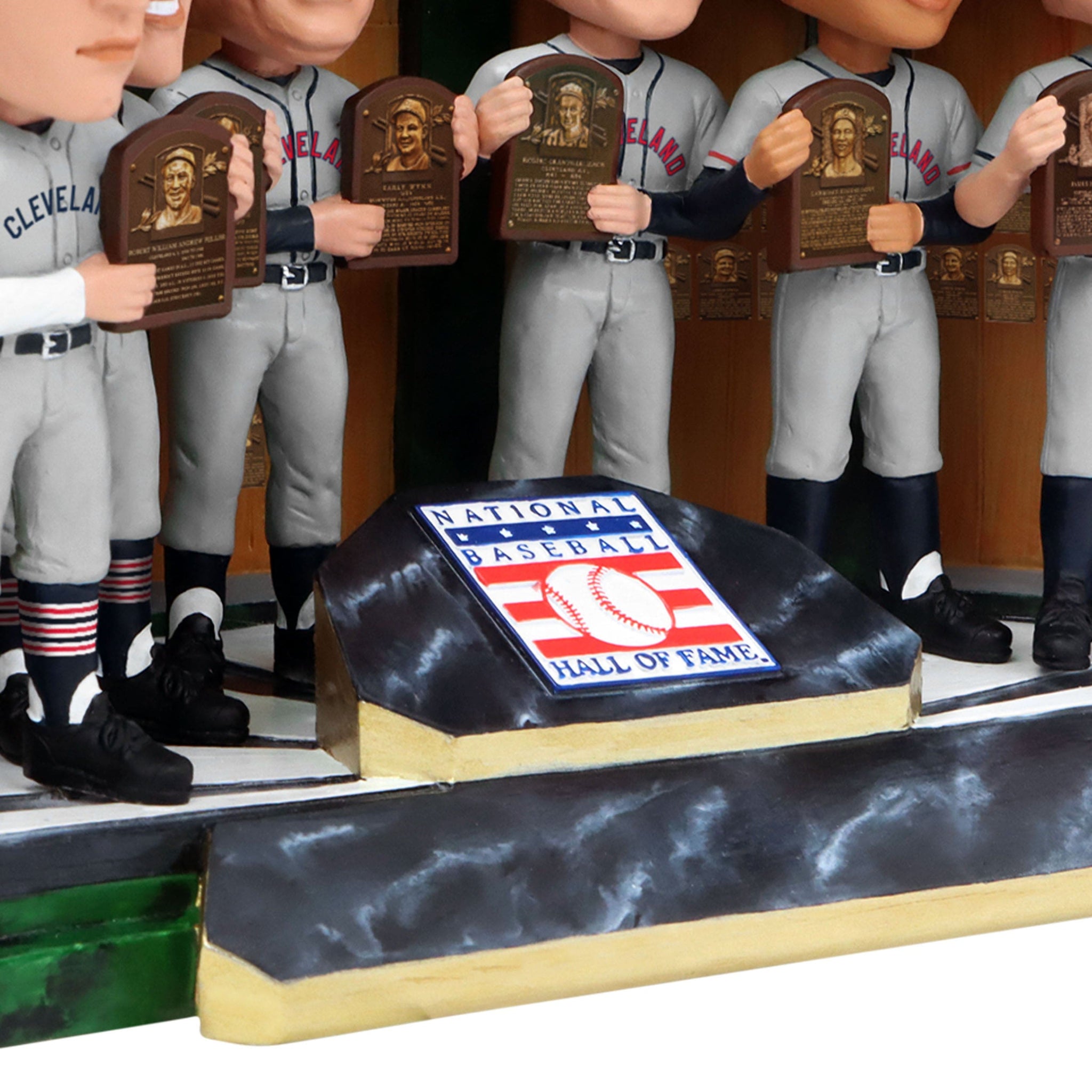 • Portrays Bob Feller, Lou Boudreau, Early Wynn, Bob Lemon, Larry Doby, and Jim Thome wearing their gameday uniforms and holding their Hall of Fame plaques, ready to be honored in your collection