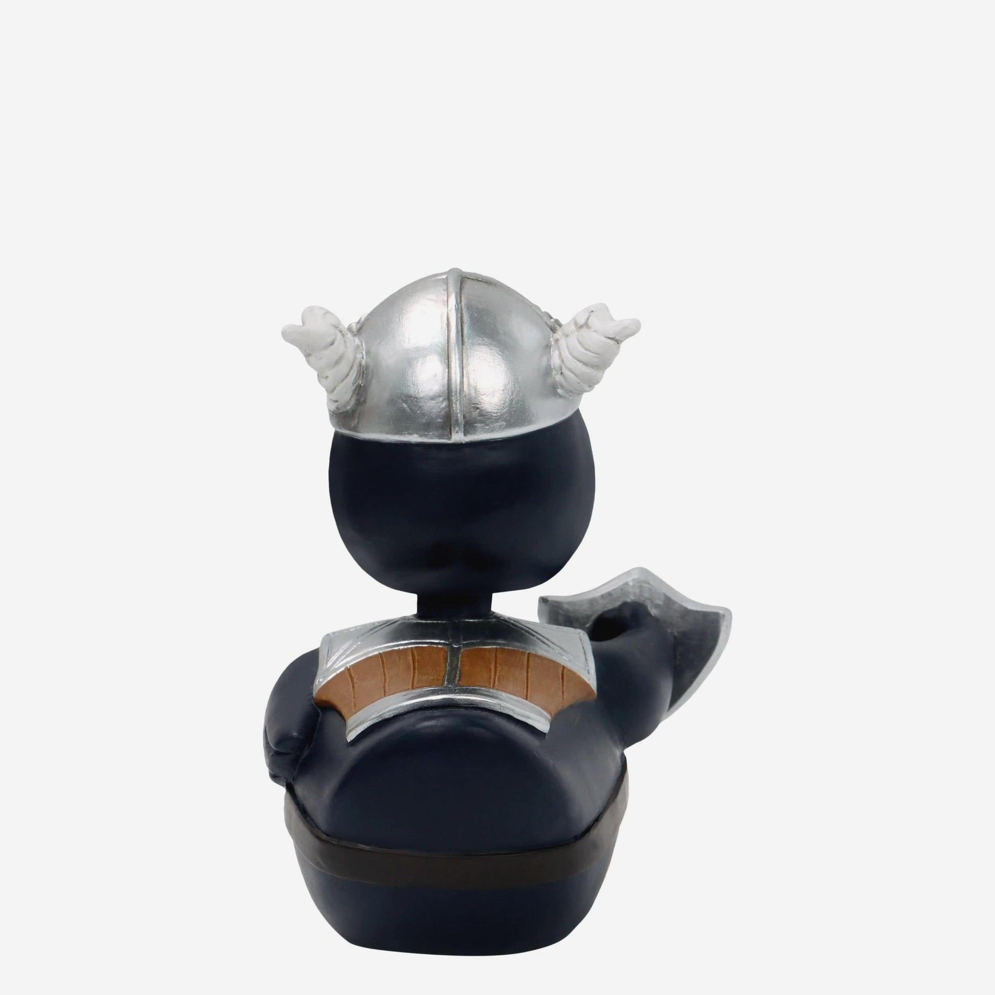 - Portrays a team-colored duck figure wearing armor and a helmet with a team logo display, ready to make a splash in your collection