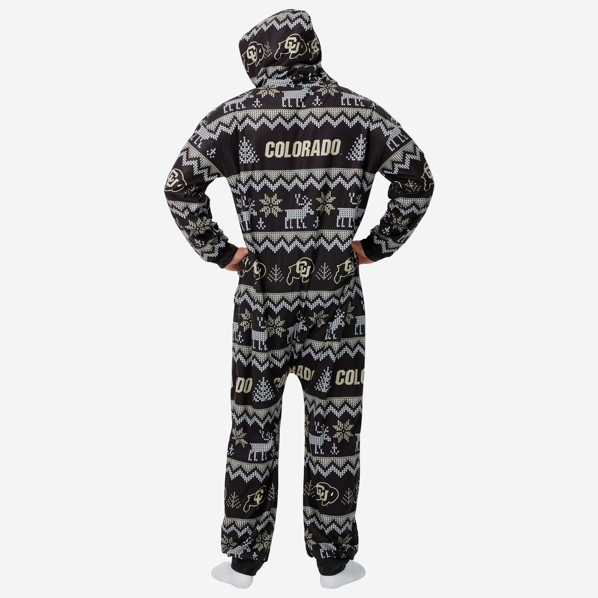 Get some matching family pajamas and dress to impress this holiday season! You won't want to miss these onesie team pajamas! These men's and women's PJ's are comfortable and show off your team spirit in the form of some sweet one piece jammies. Introducing the Colorado Buffaloes Ugly Pattern One Piece Pajamas! Don't forget to take your holiday photo with the whole family wearing matching Christmas pajamas!