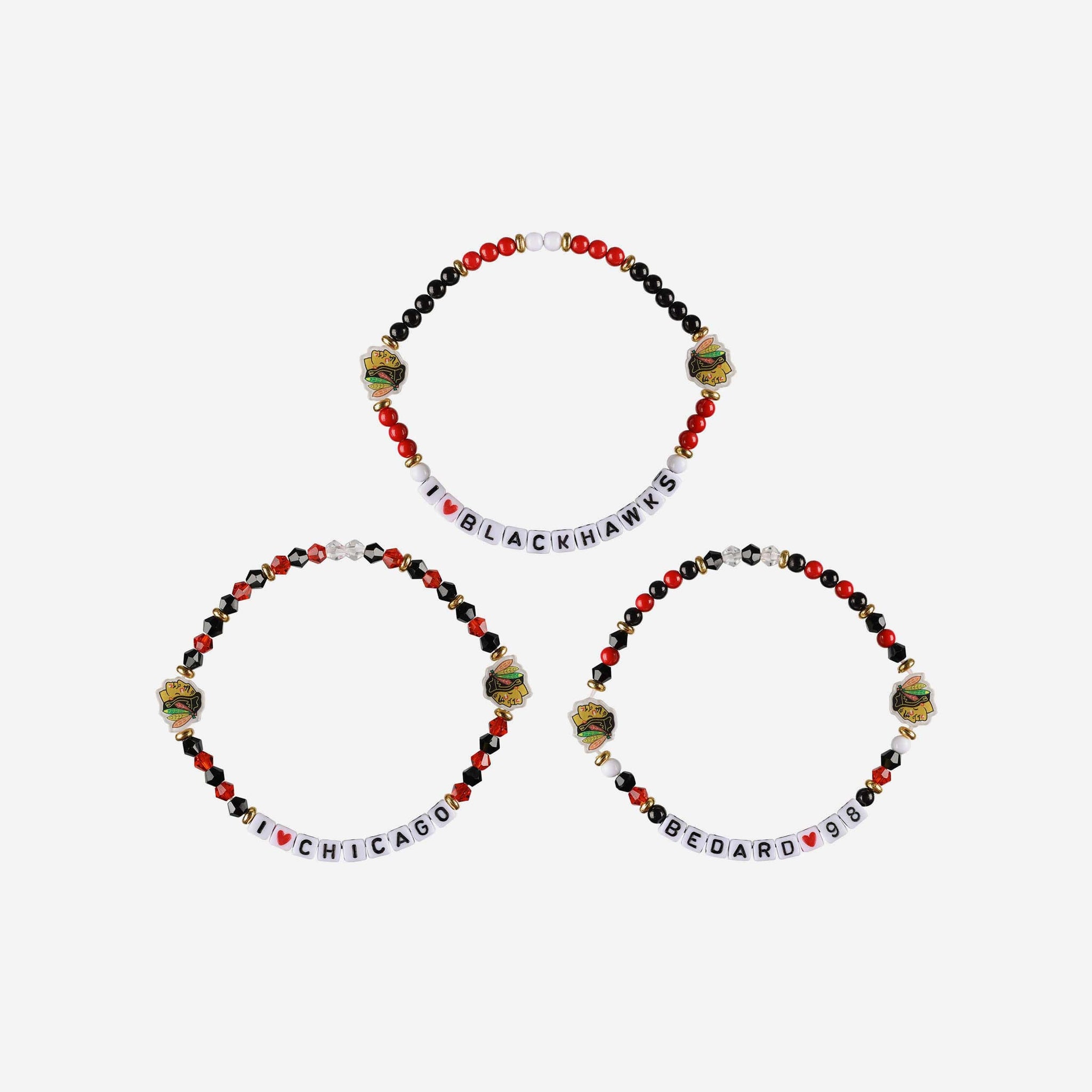 Accessorize and maximize your fandom while impressing your fellow fans with this Connor Bedard Chicago Blackhawks 3 Pack Player Friendship Bracelet. These matching friendship bracelets have an all-over team-colored design and team logo displays, which makes them the perfect way to show your support for the Chicago Blackhawks and get in on the latest accessory craze.