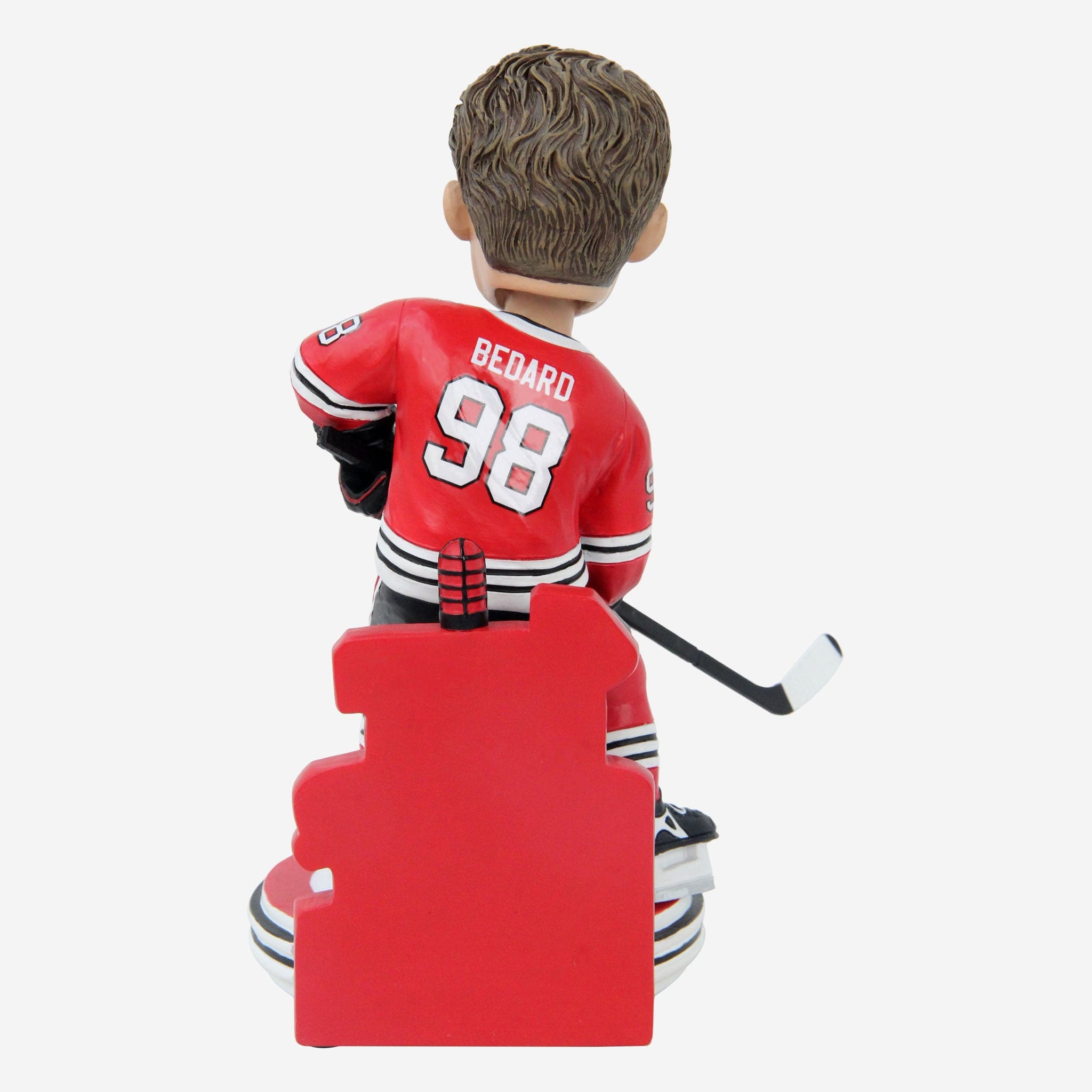 - Portrays Bedard wearing his red gameday uniform in an action pose, ready to put one in the net