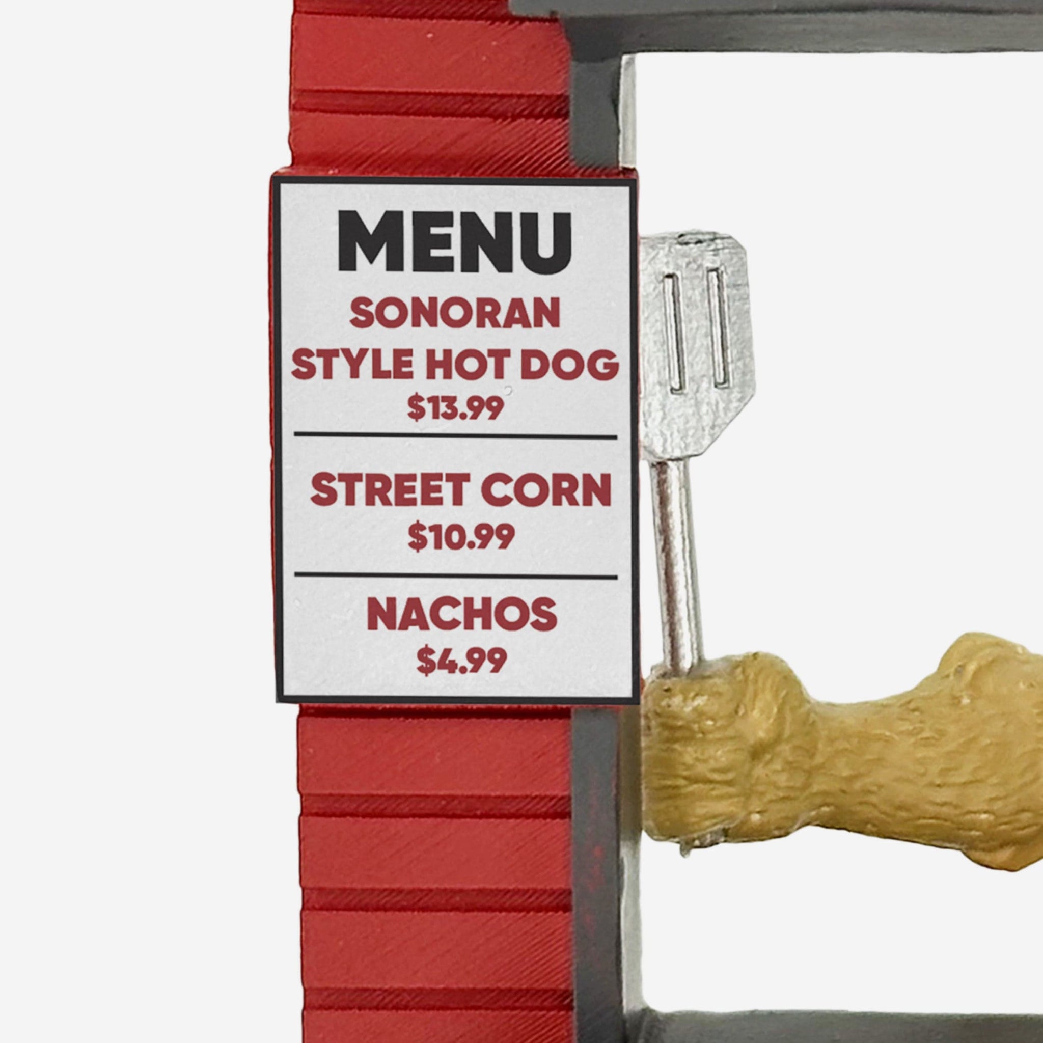 - Thematic, team-colored concession stand front frame on top of base to satisfy your gameday-sized appetite