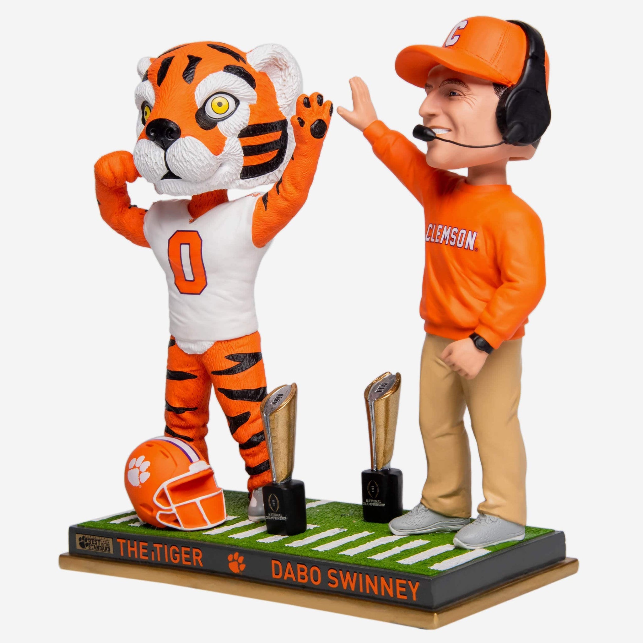 Another Clemson Tigers national championship deserves a big celebration. And a big celebration isn't complete without this Dabo Swinney Clemson Tigers Mascot Dual Championship Bobblehead. Celebrate with the dynamic duo and show off your championship-level fandom.