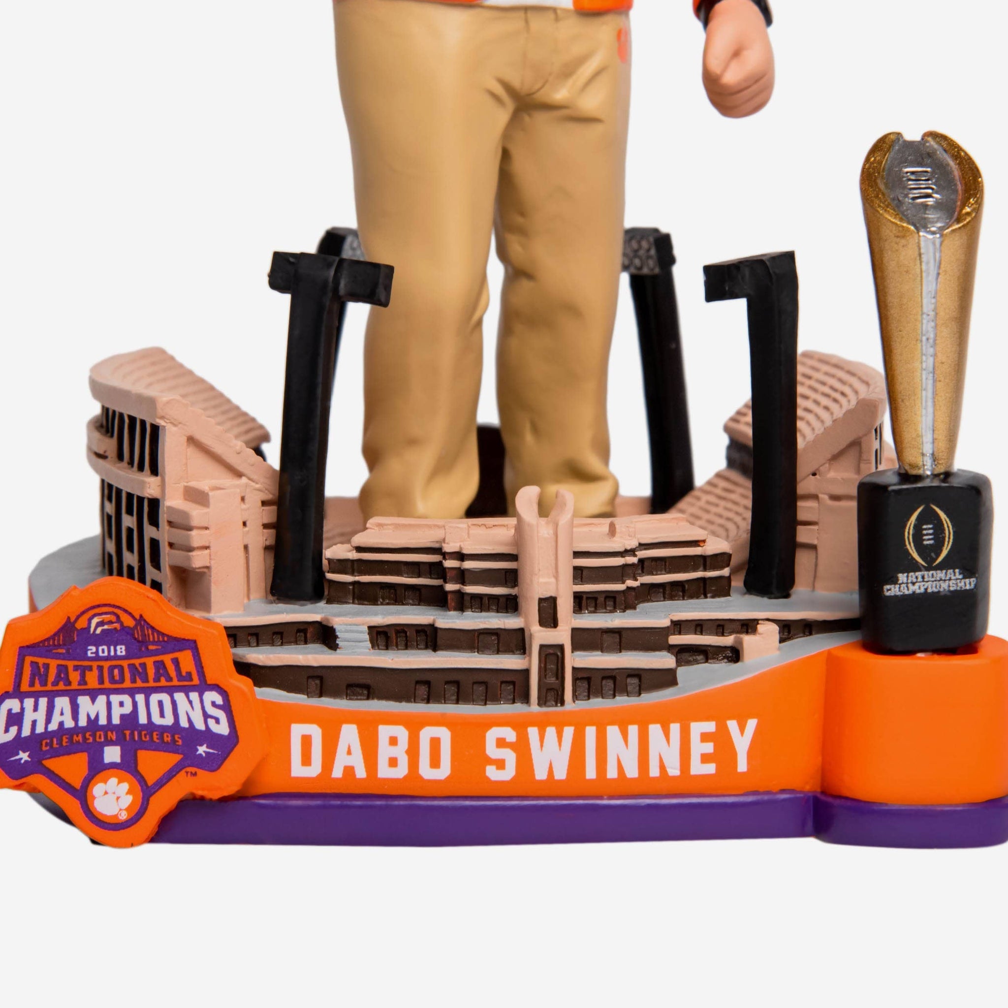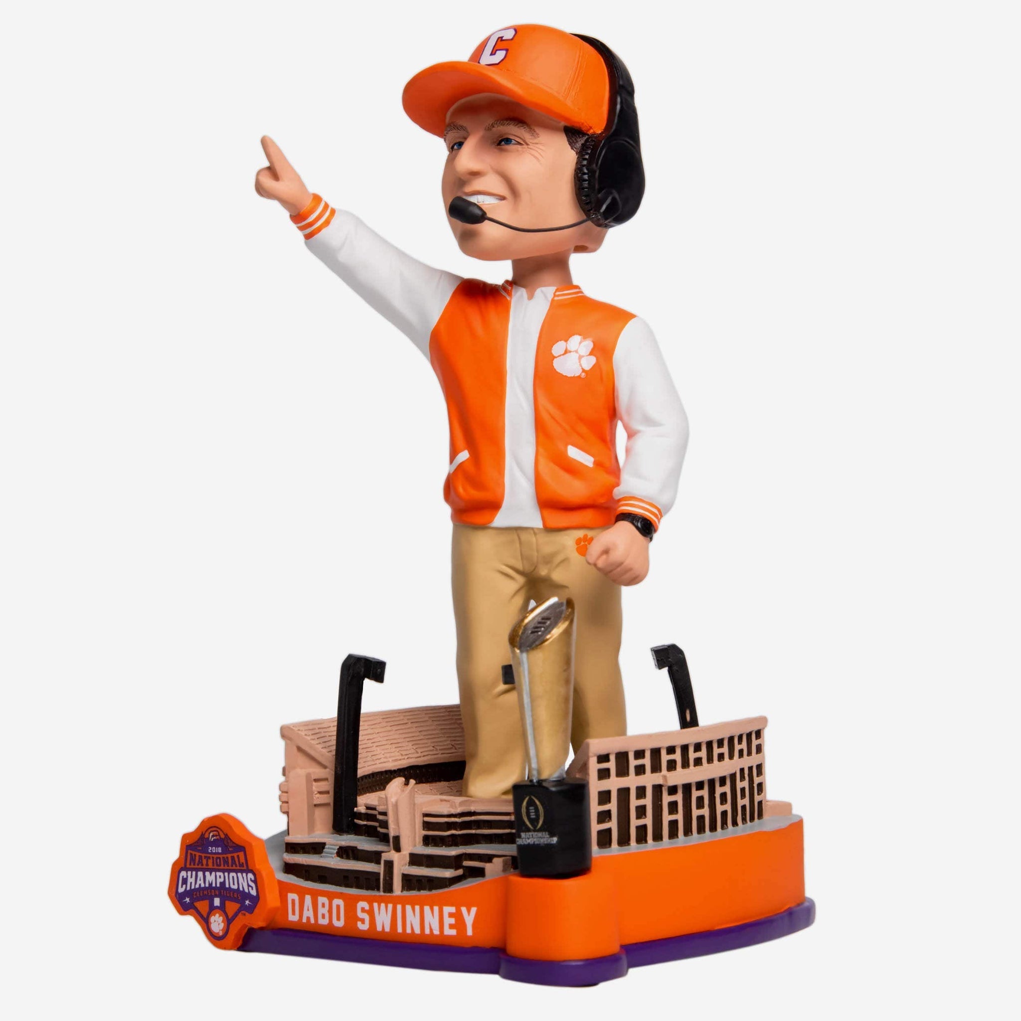 The Clemson Tigers are on top of the college football world once again. Celebrate with the man himself by adding this Dabo Swinney Clemson Tigers Stadium Base Championship Bobblehead to your collection. He'll coach you on how to celebrate properly.