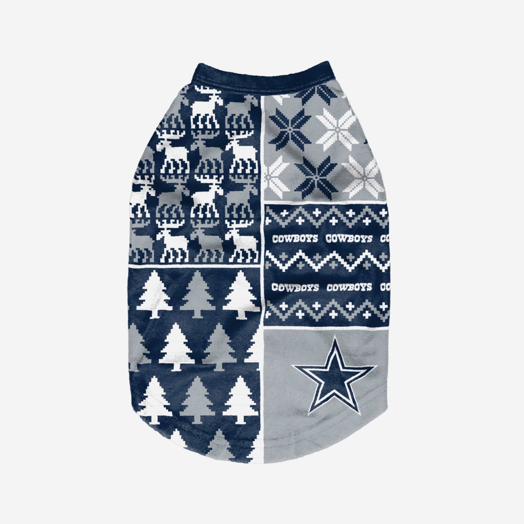 Show off your pet's holiday spirit with this dog sweater! Your good boy (or girl) will love this Dallas Cowboys Busy Block Dog Sweater so much, they'll be saying "woof bark awooo" (that's "thank you" in pup language). Don't forget to match your canine's sweater with a set of matching holiday pajamas!