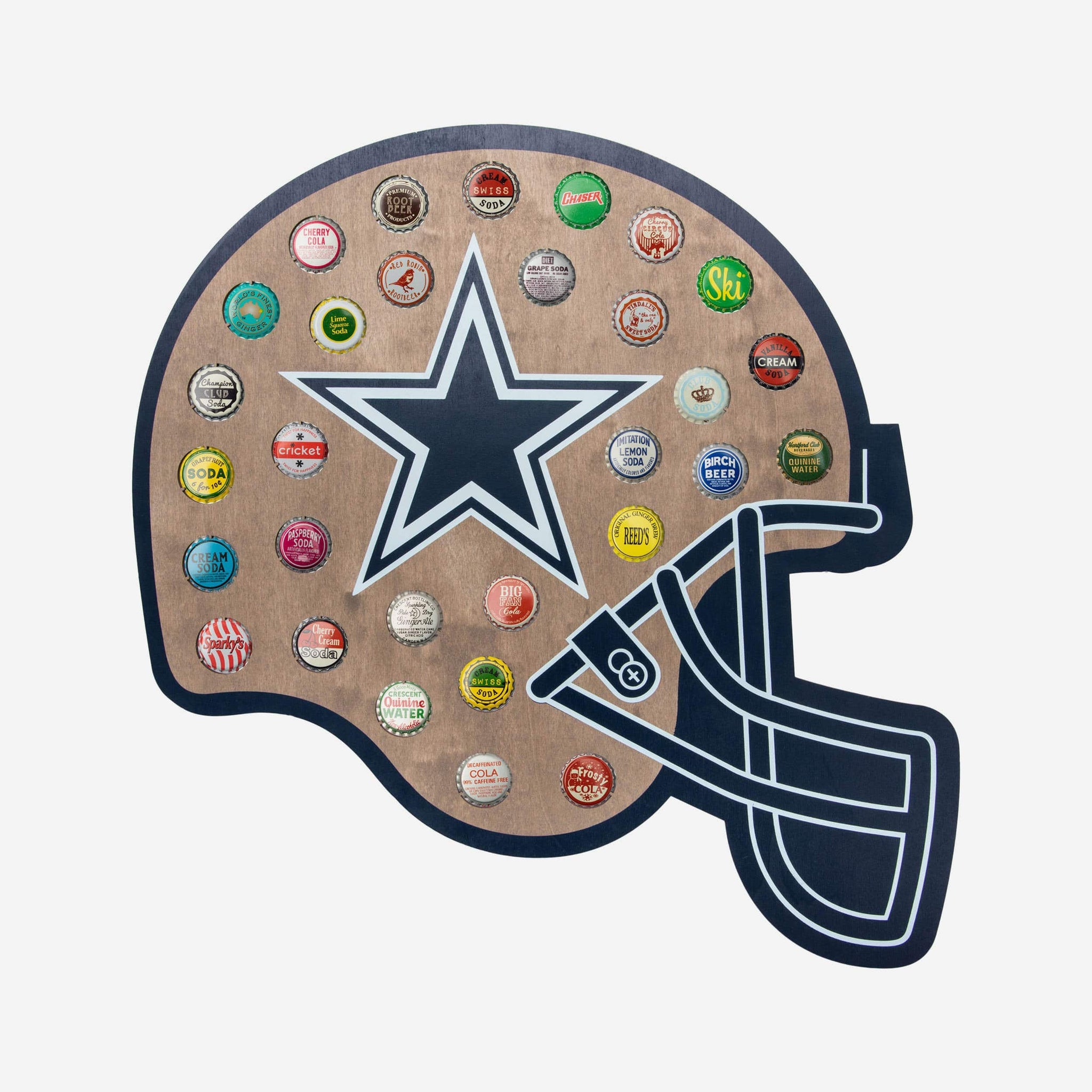 Cap off your fancave decorating and keep track of every cold one you crack while watching the game with this Dallas Cowboys Push Bottle Cap Wall Sign.