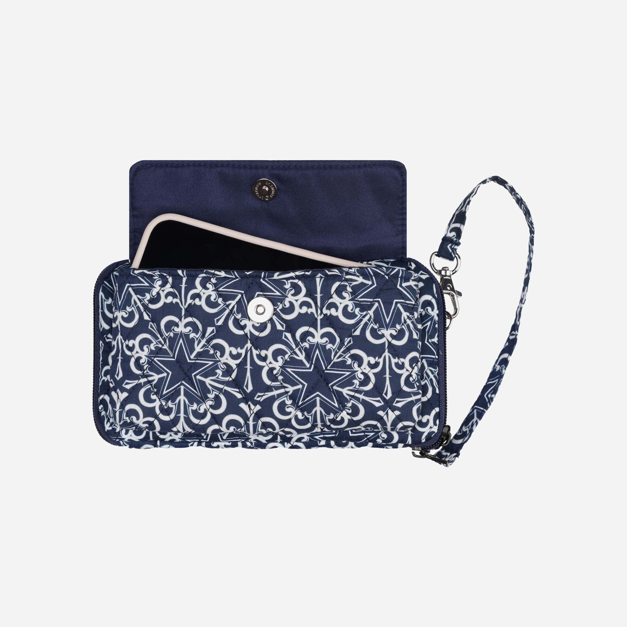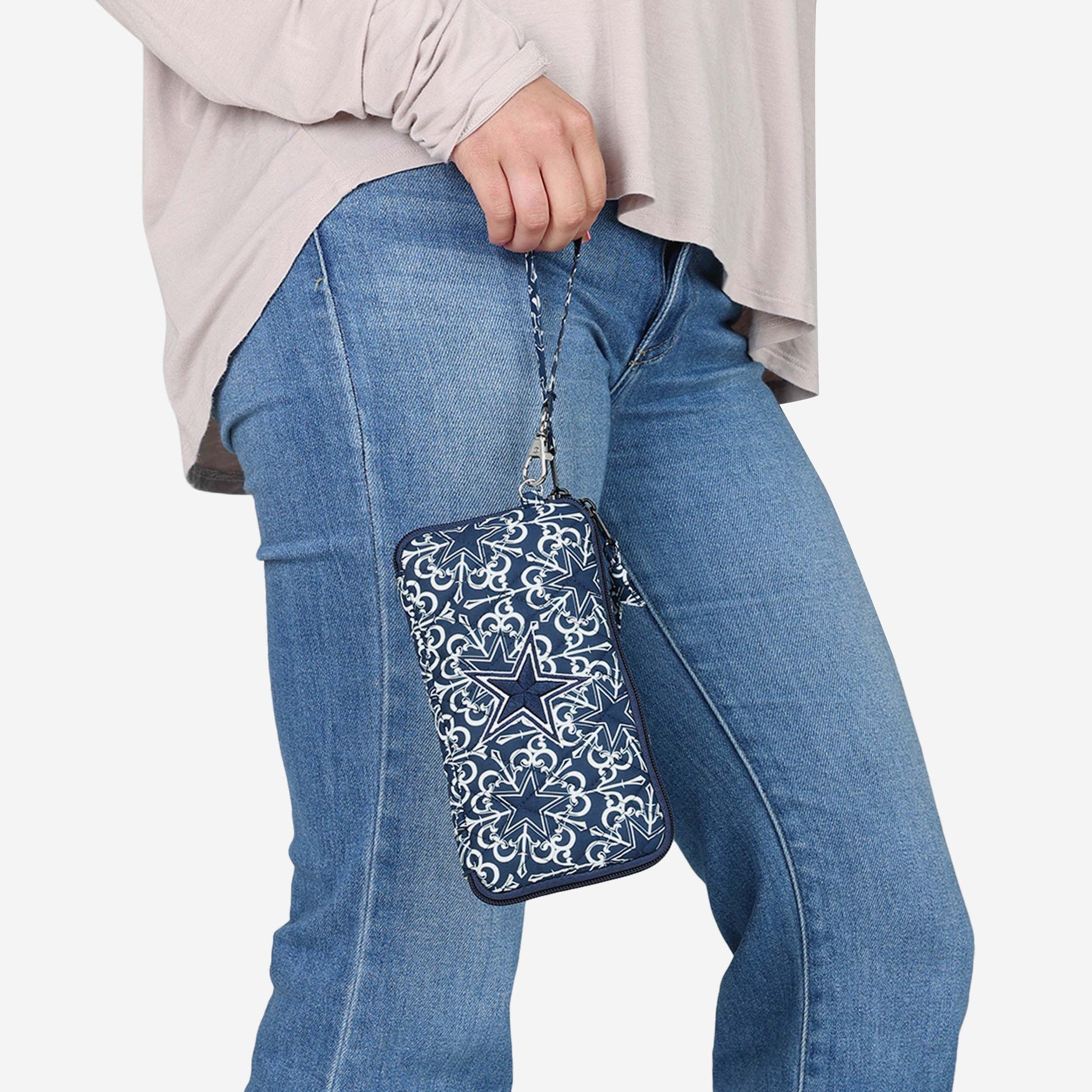 Get ready to fashionably flaunt your fandom! Keep your essentials close and your team pride on display with the Dallas Cowboys Quilted Printed Wristlet.
