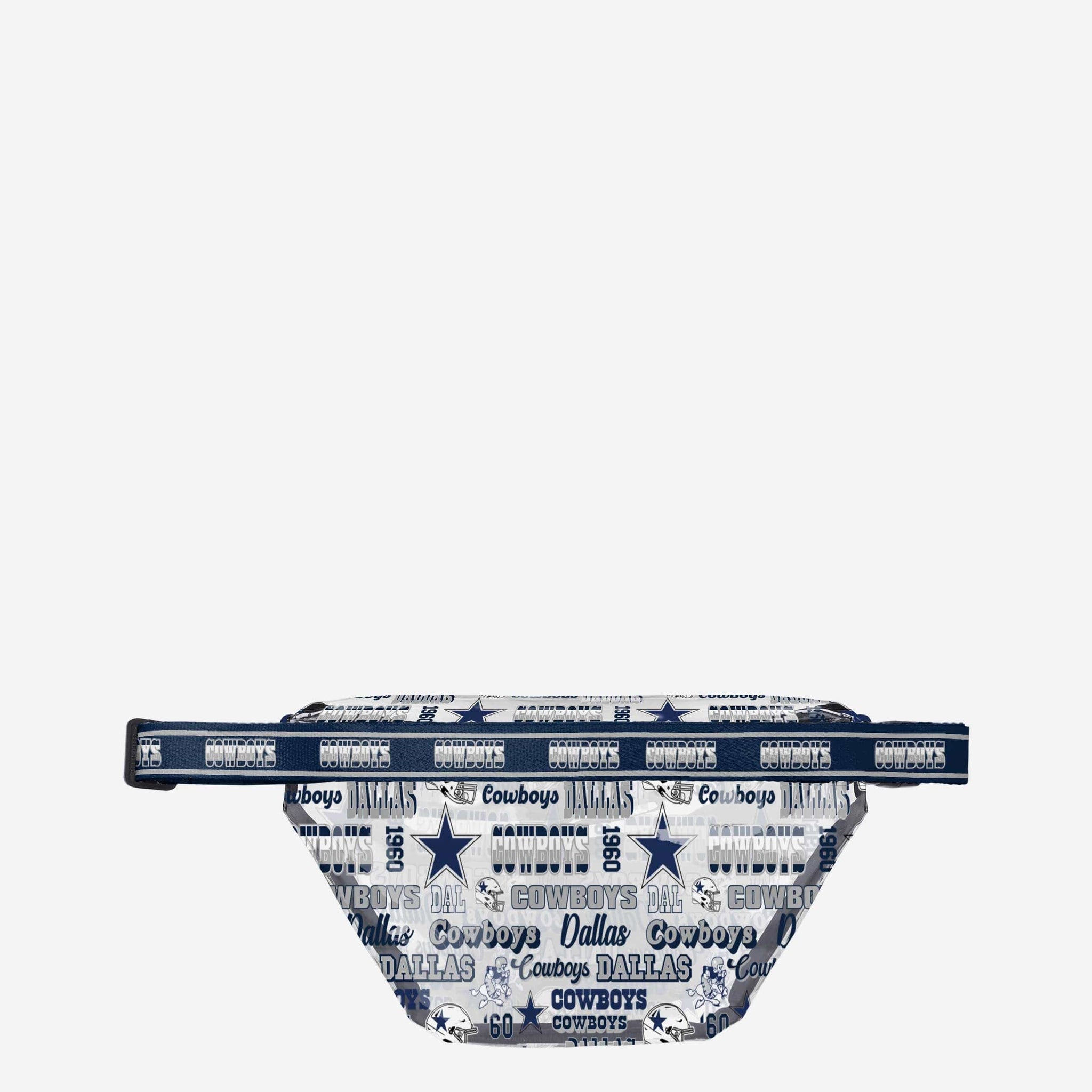 Looking for a fashionable bag for your fan fit? The answer is clear. You’ll have everything you need to be your best on gameday and every day with the Dallas Cowboys Repeat Retro Print Clear Fanny Pack.