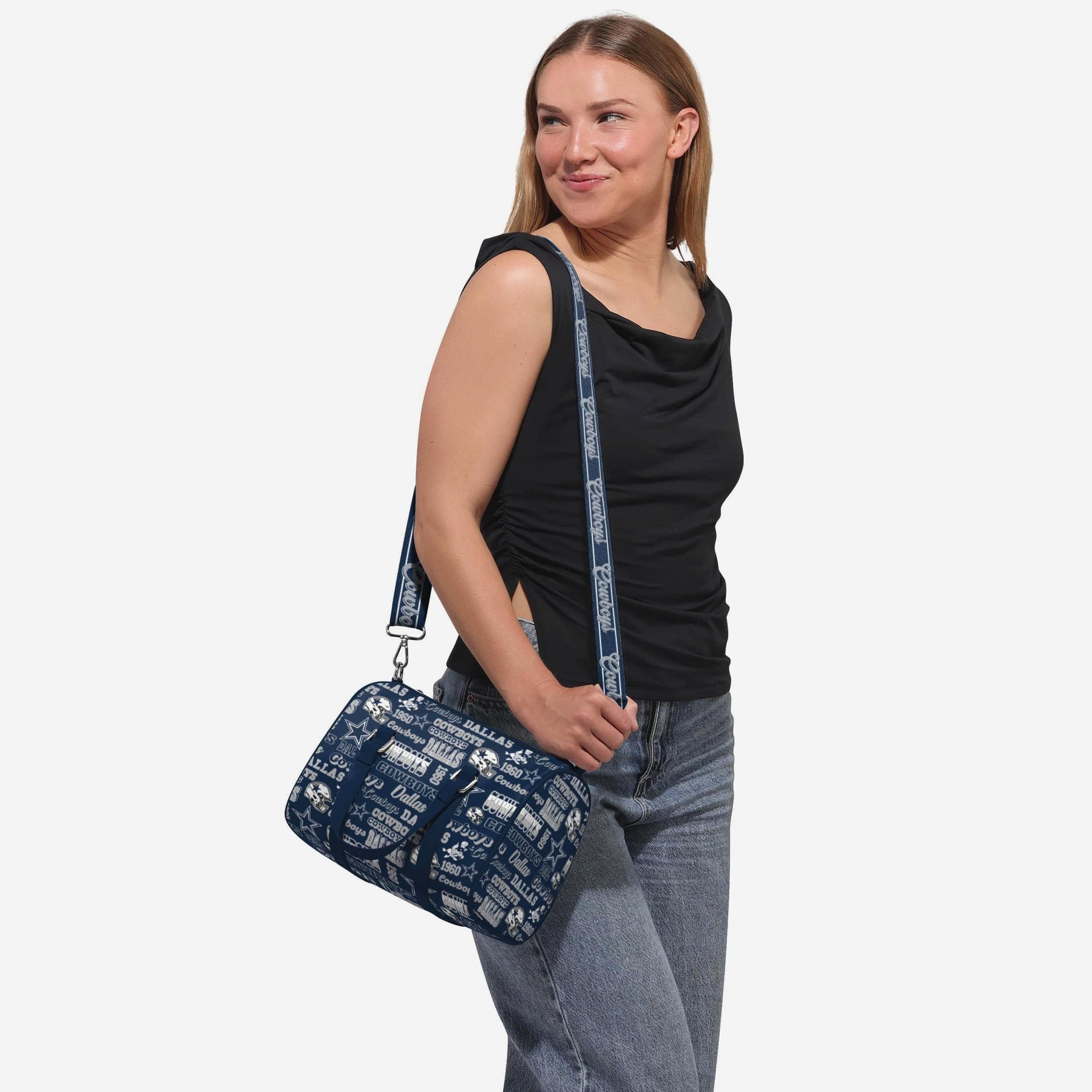 Pack up and play on! Fashion meets fandom in the Dallas Cowboys Repeat Retro Print Nylon Medium Barrel Bag.