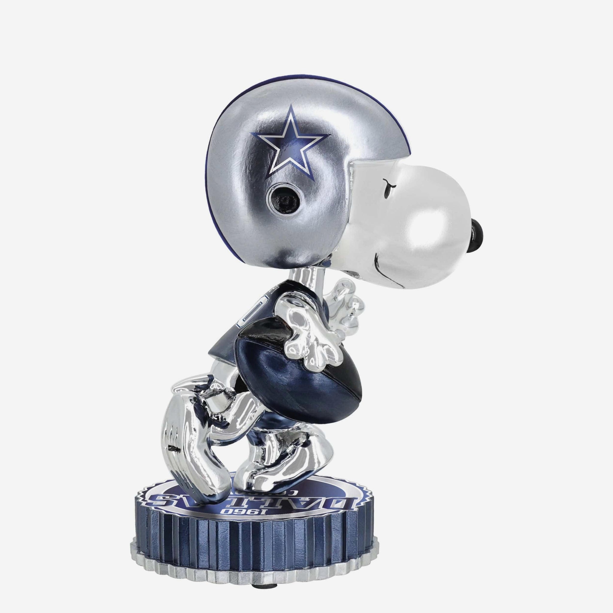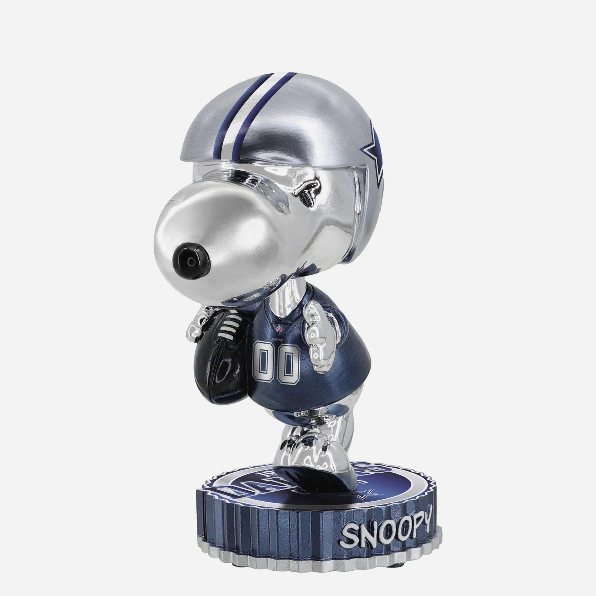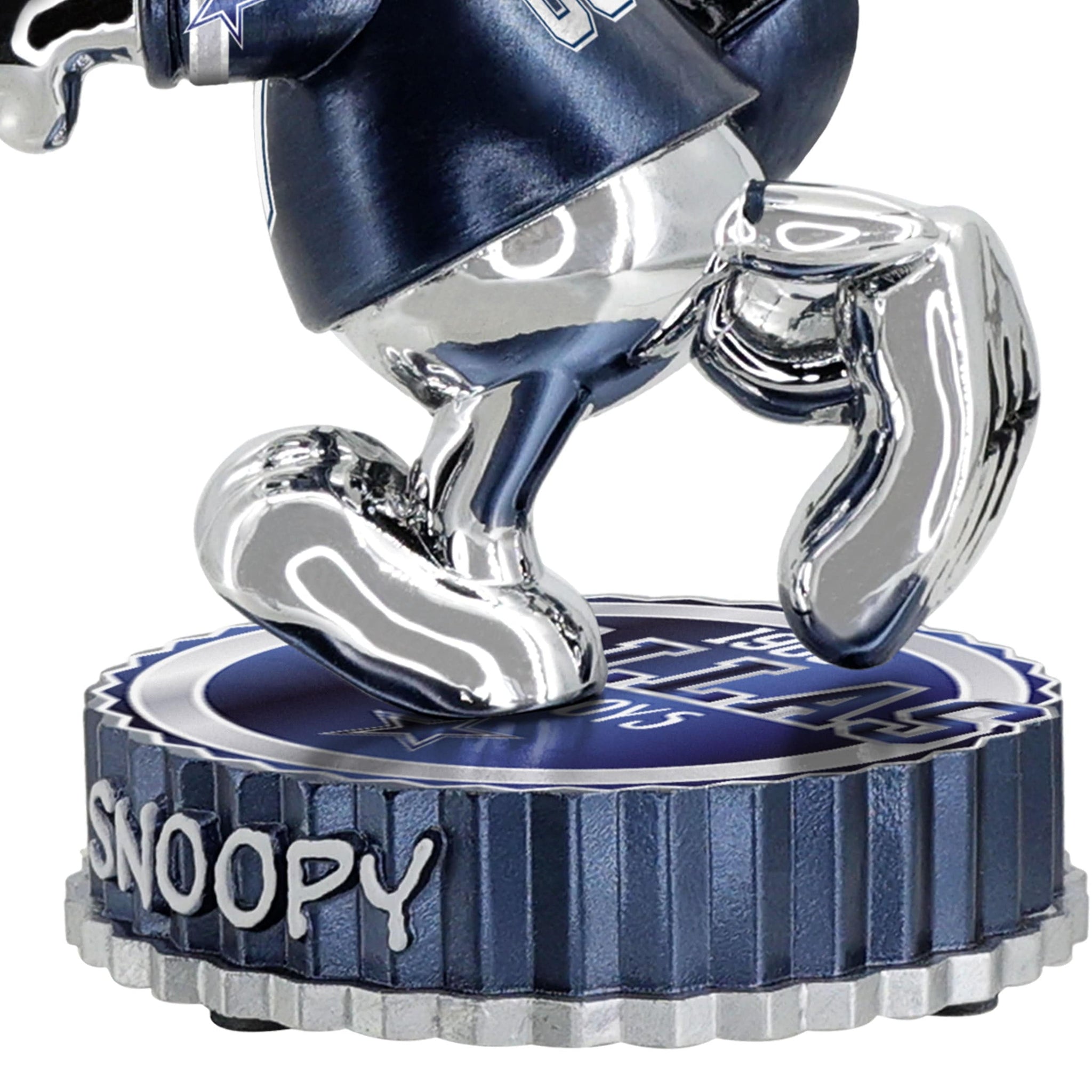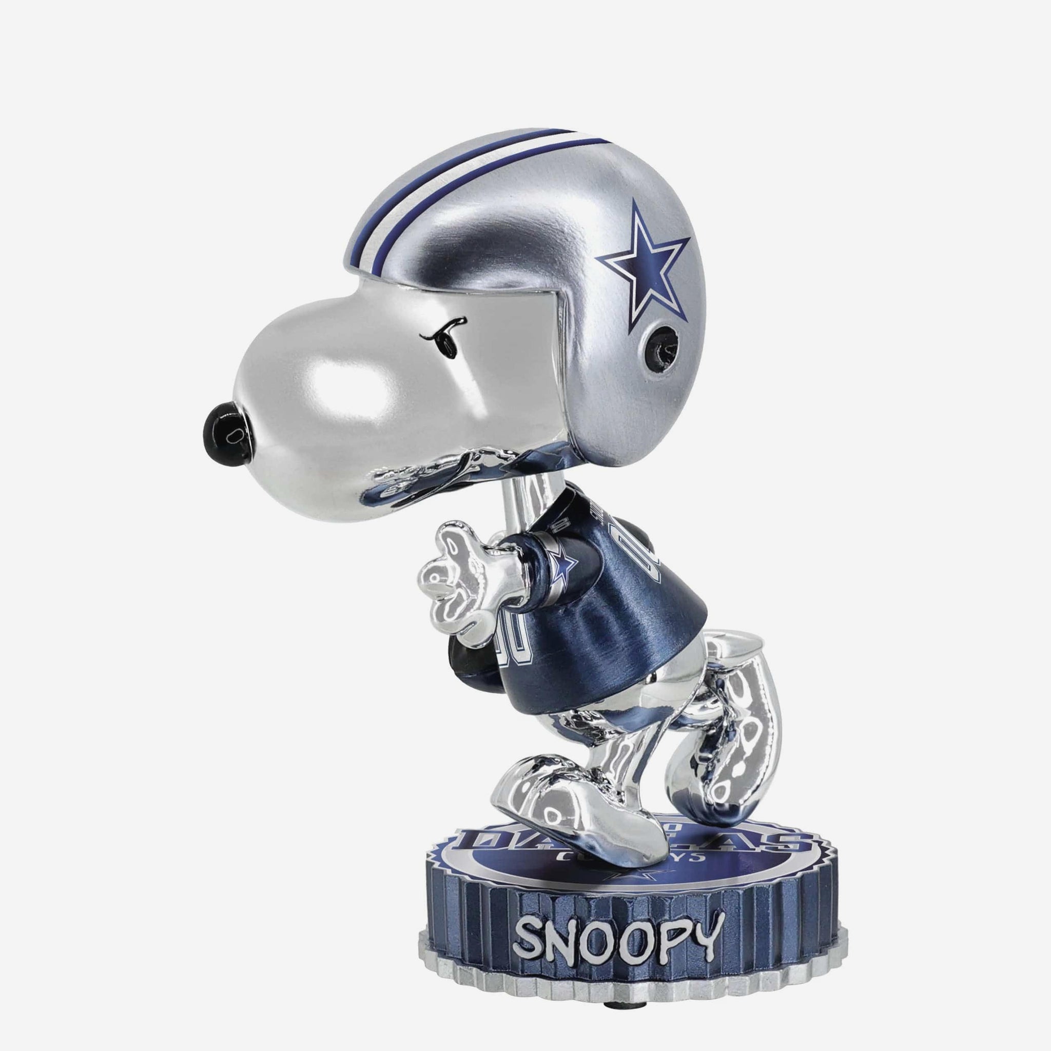 Snoopy is suiting up for game day in dazzling style! Add a little gridiron glow to your collection with this Dallas Cowboys Snoopy Peanuts Electroplated Medium Bighead Bobblehead.