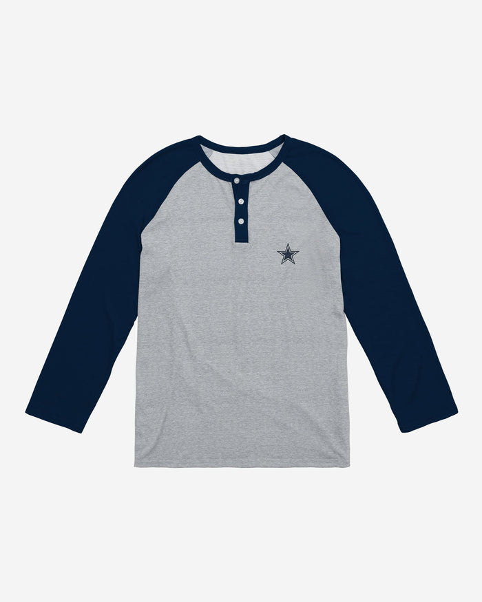 Even on the sunniest of days, there's nothing wrong with a little gray. Win the day in style with this Dallas Cowboys Team Logo Gray Long Sleeve Henley.