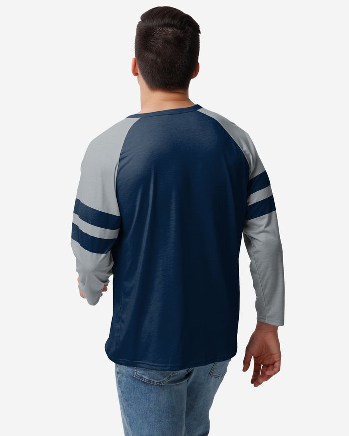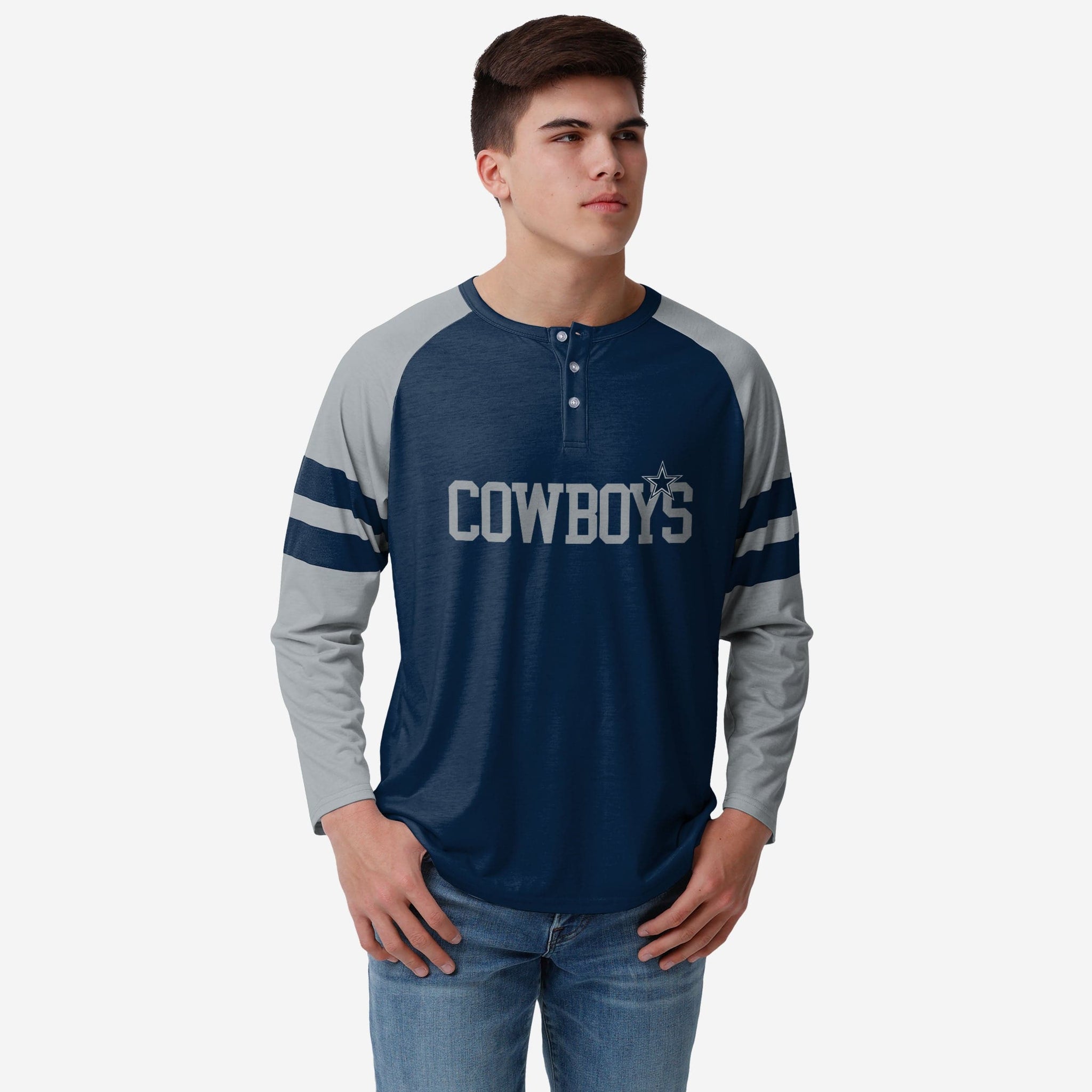 Long sleeves to keep you warm. Sleek style to keep you cool. Bring some sensational style to the game or wherever your team spirit takes you with this Dallas Cowboys Team Stripe Wordmark Long Sleeve Henley.