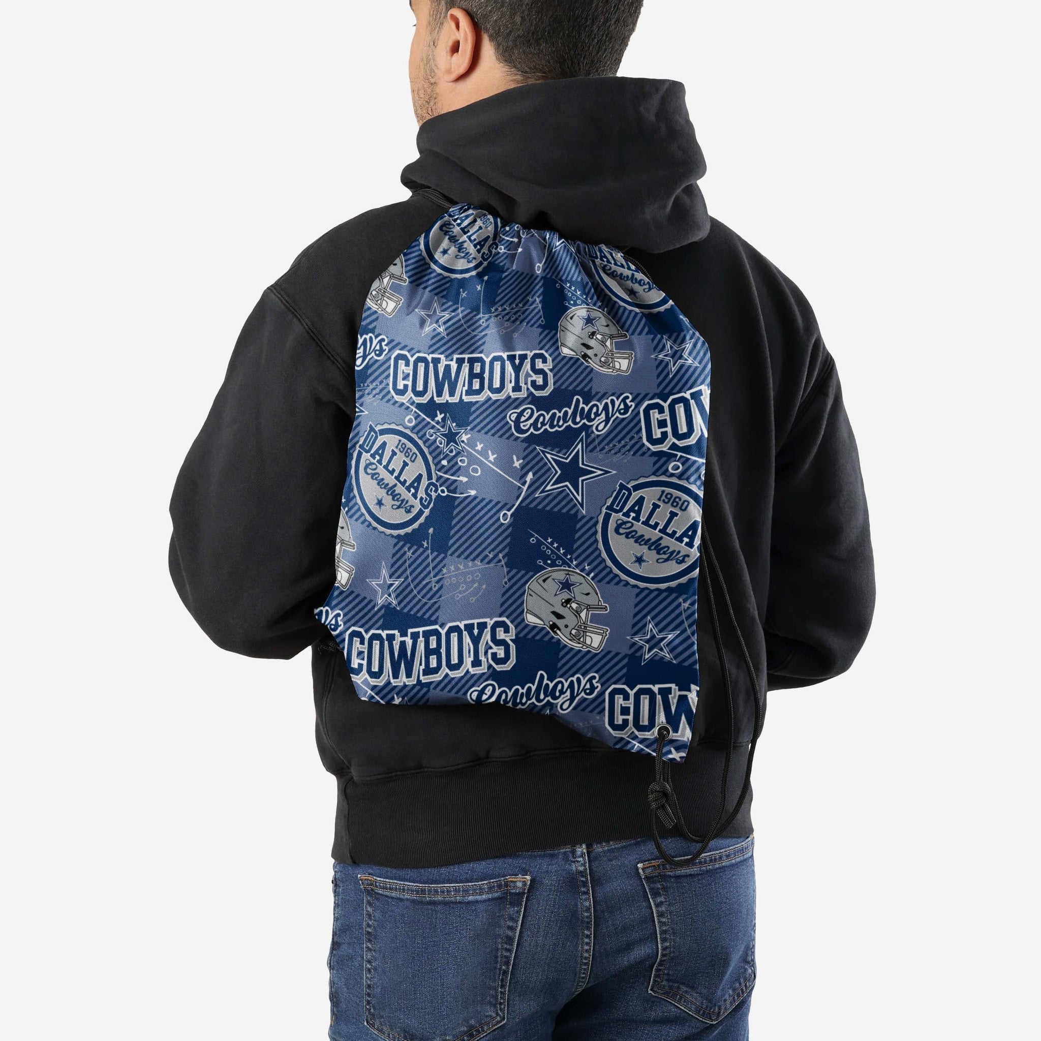 Step one: Pack up all your team spirit. Step two: Take it on the go. Step three: Repeat the first two steps for any adventure you go on with this Dallas Cowboys Thematic Repeat Print Drawstring Backpack.