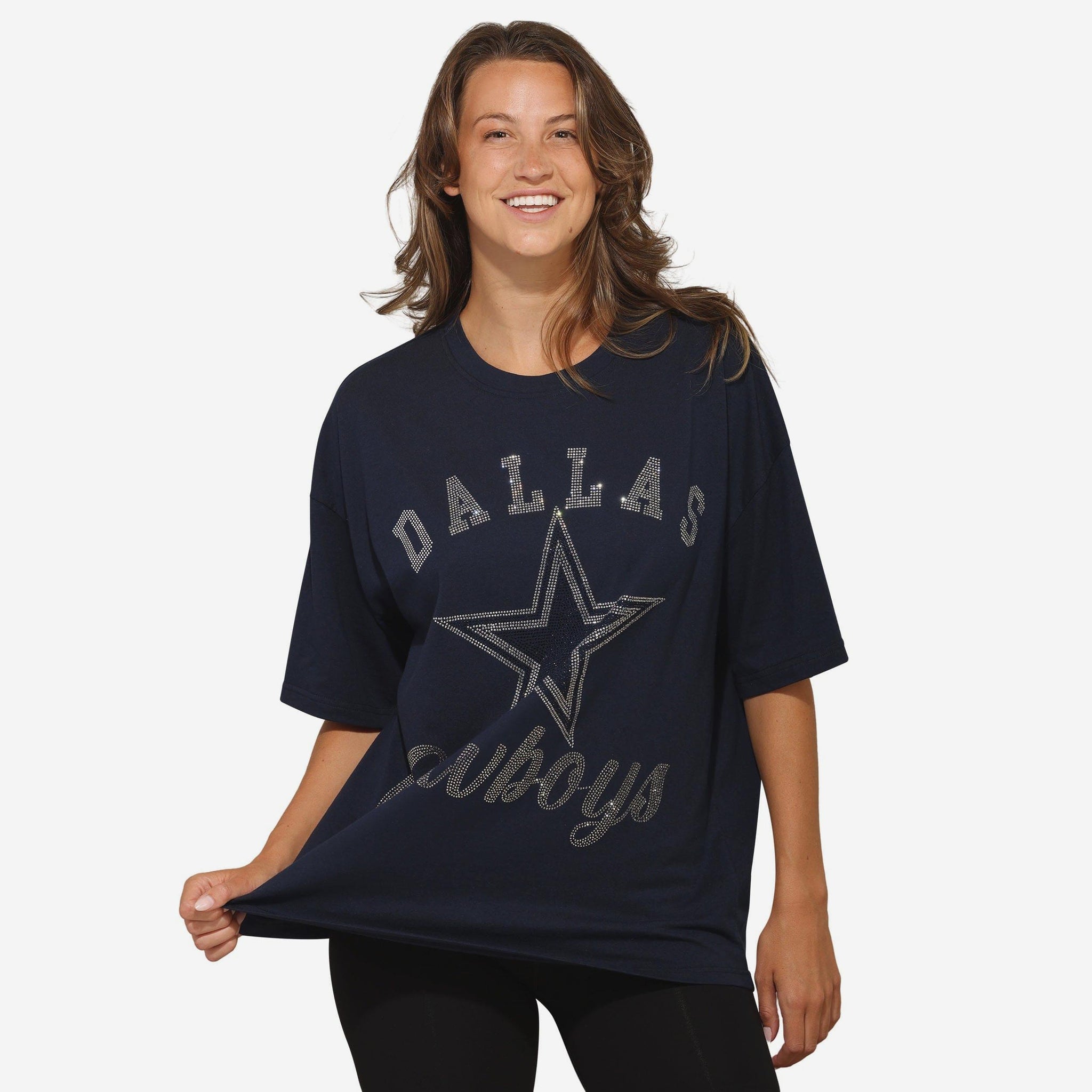 Dallas Cowboys Womens Rhinestone Logo Oversized T-Shirt FOCO S - FOCO.com