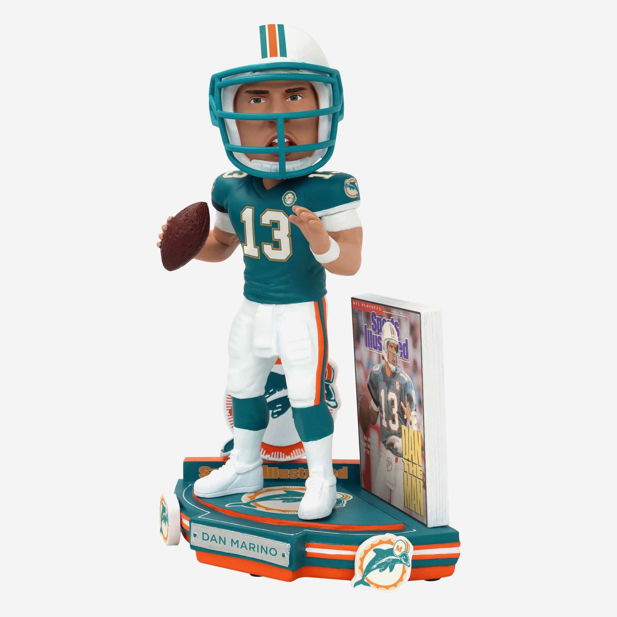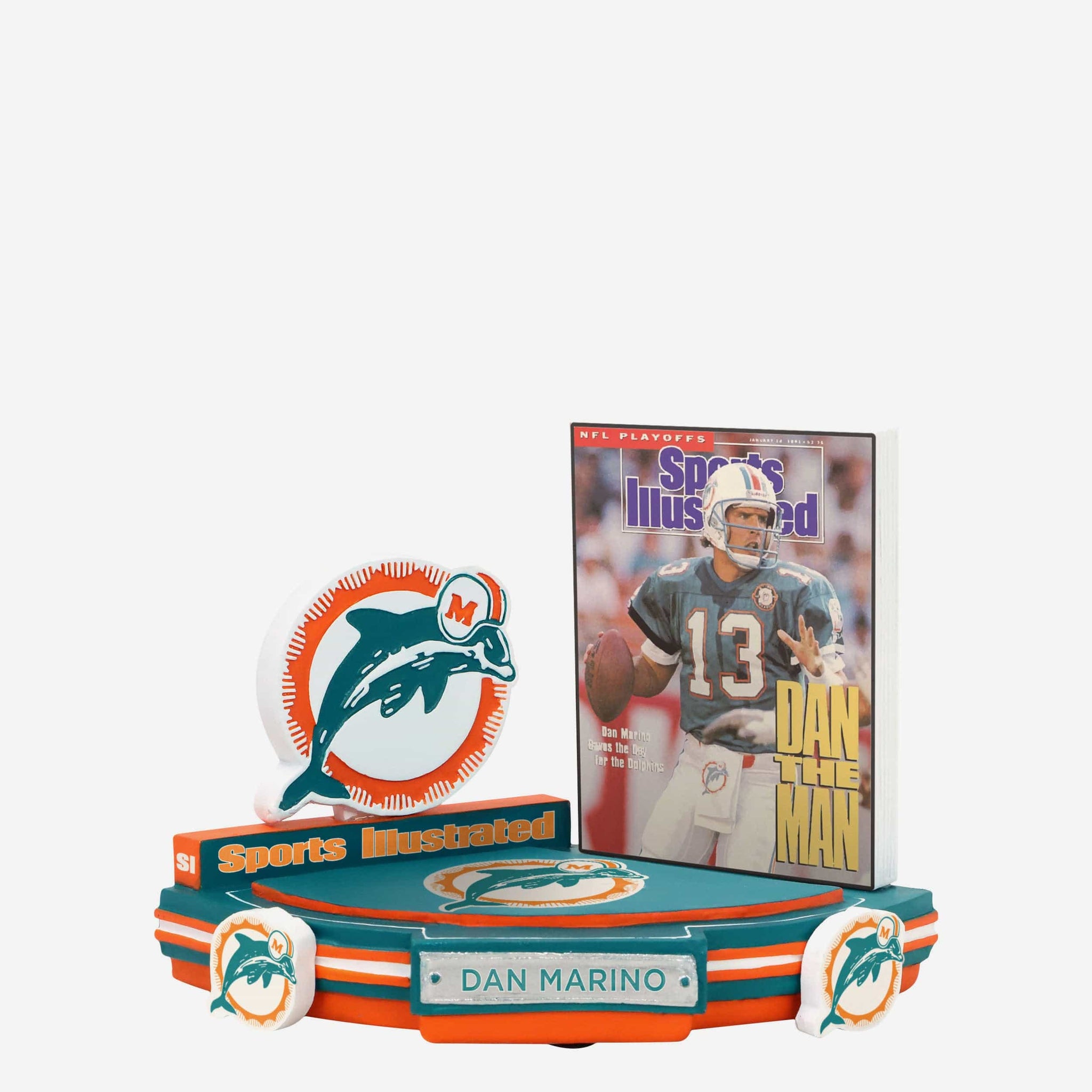 September 12, 1994: Dan the Man has a sensational comeback! Make a newsworthy addition to your collection with the Dan Marino Miami Dolphins Dan the Man Sports Illustrated Cover Bobblehead.
