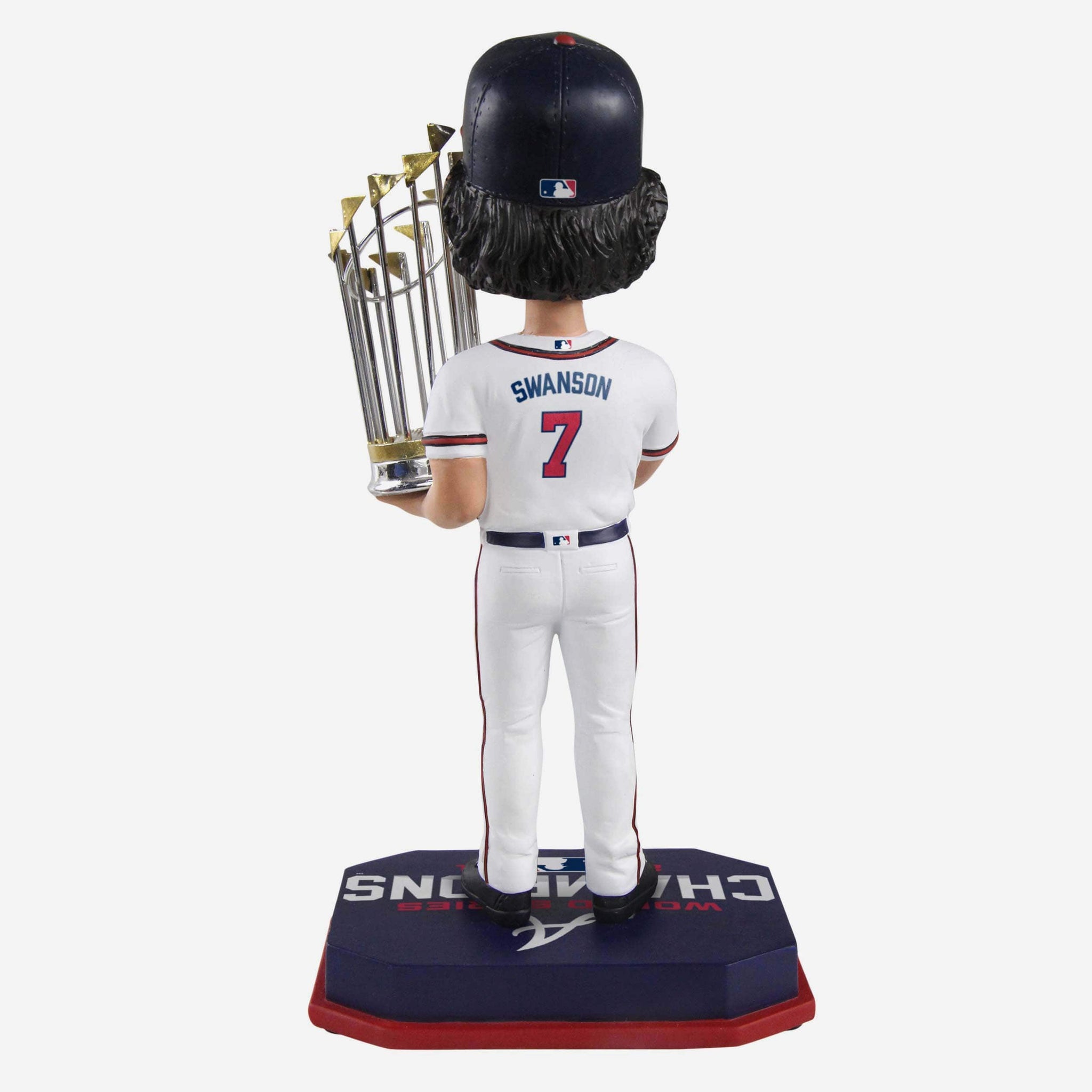 Bad news: You didn't get to go on the field and celebrate with the team. Good news: You can still celebrate with your favorite star in the friendly confines of your collection with this Dansby Swanson Atlanta Braves 2021 World Series Champions Bobblehead!