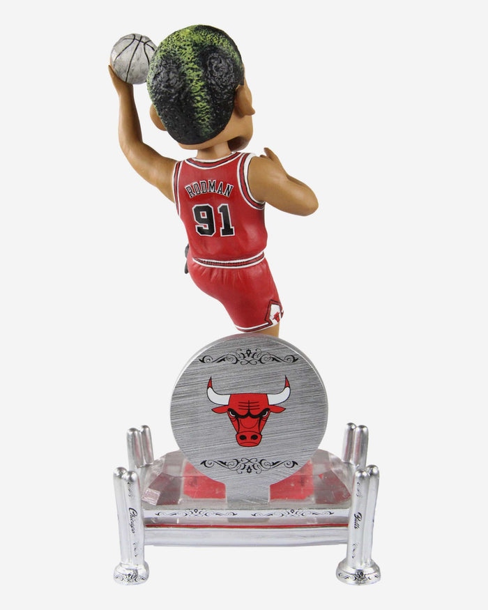 - Portrays Rodman in an action pose wearing his gameday uniform with a diamond basketball, ready to make another great play