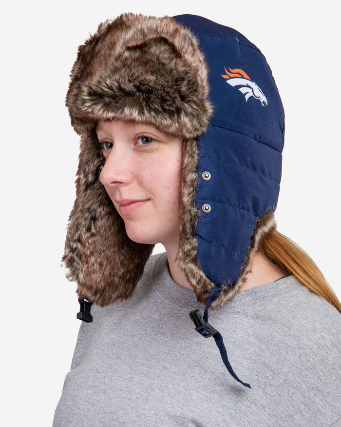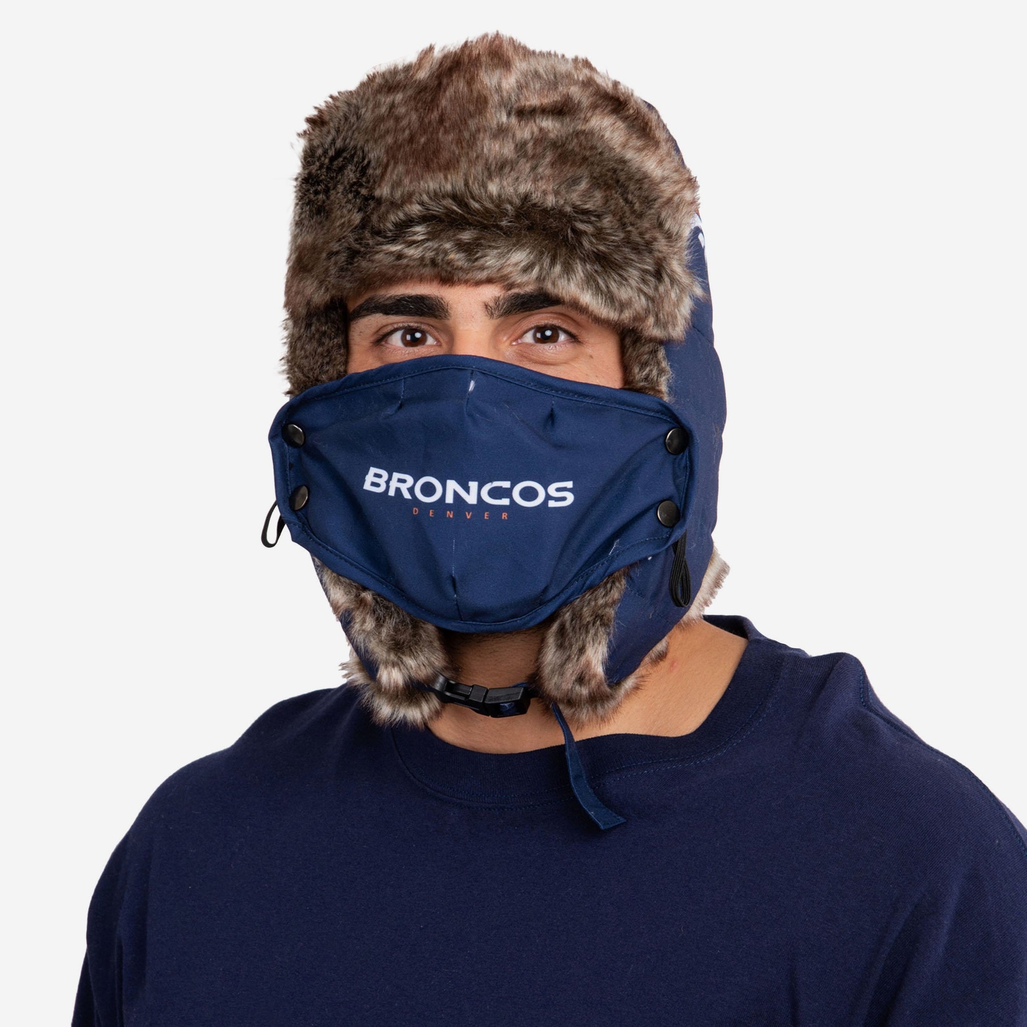 Getting chilly out? Don't worry. We've got you covered! Look cool and stay nice and warm in this Denver Broncos Big Logo Trapper Hat with Face Cover!