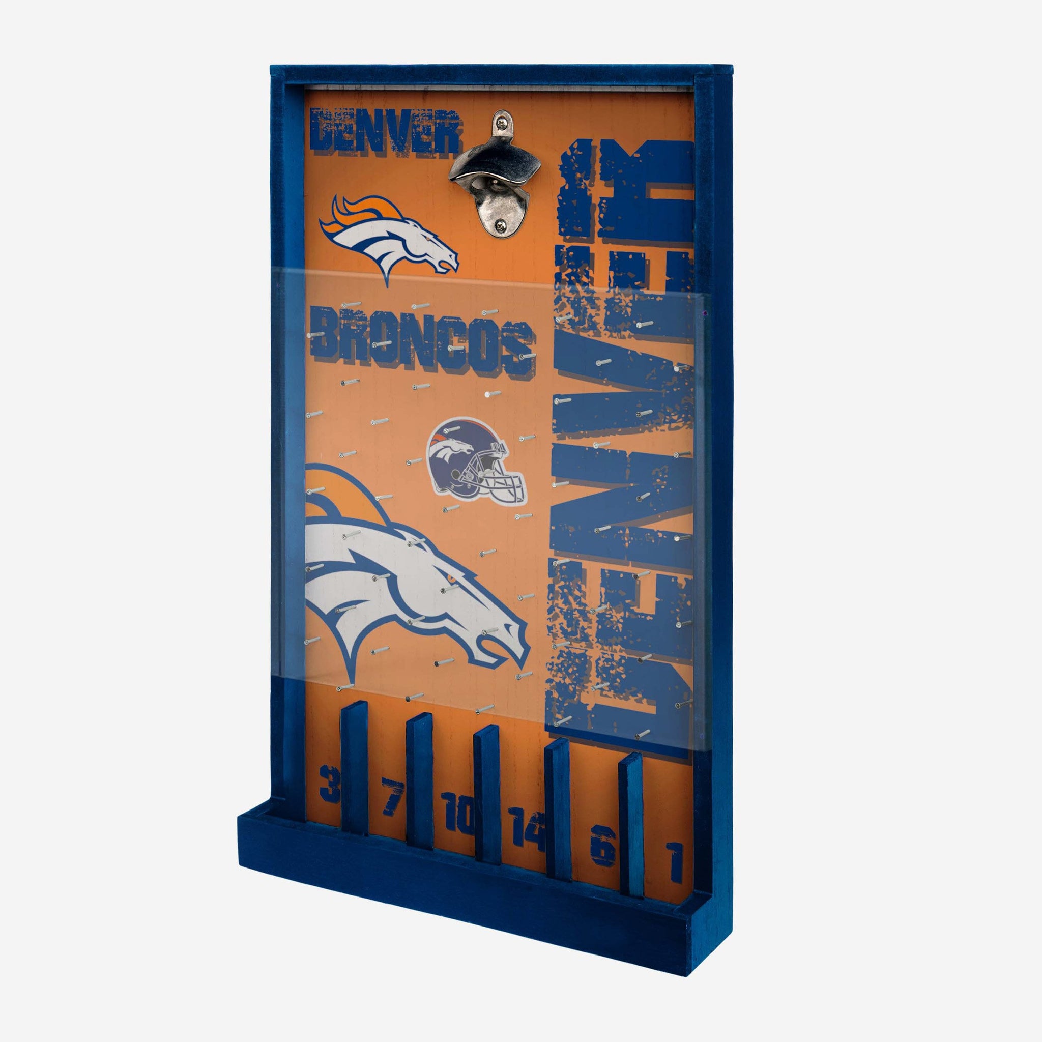 There's nothing better than relaxing in the fancave, enjoying a cold beverage, and watching the game. Nothing, of course, except doing all of that while opening your cold beverage with this Denver Broncos Bottle Opener Sign Game. Pop the cap, watch it fall, track your score, and be a winner when your friends come over for the game.