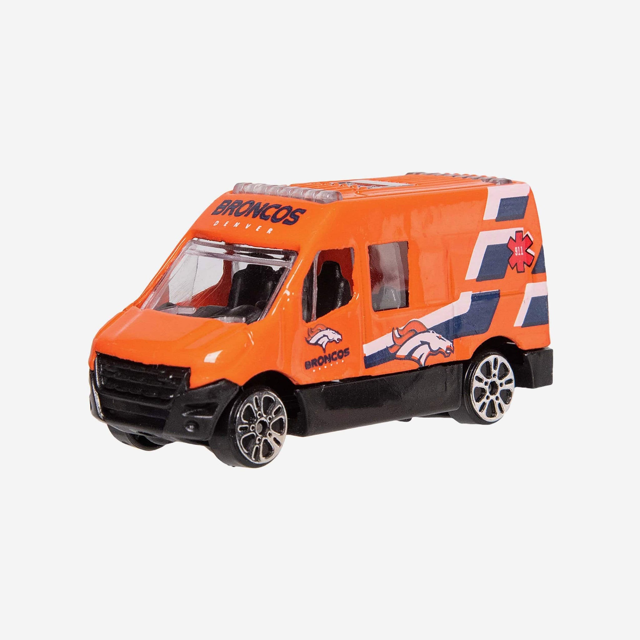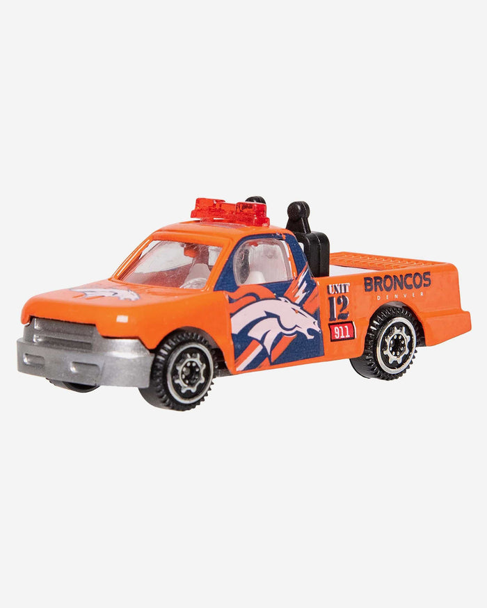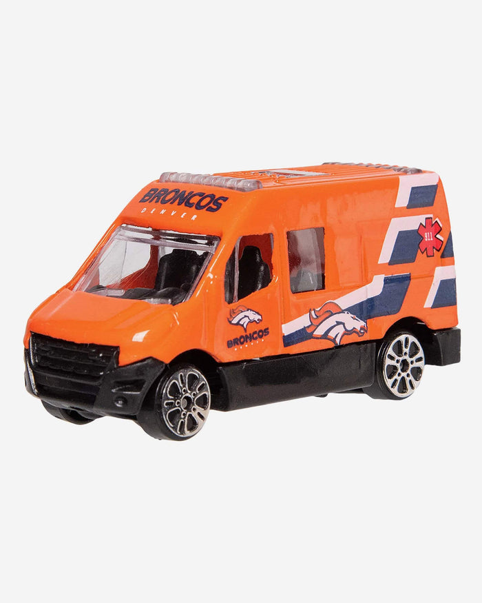 Vroom vroom. Fuel up for fandom with this Denver Broncos 4 Pack Die Cast Cars. Each set includes an ambulance, a fire truck, a bus, and an emergency pickup truck decked out in your team colors, so you'll be the coolest fan on the road. Figuratively speaking. Because they're not street legal. But they'll look great on your desk.