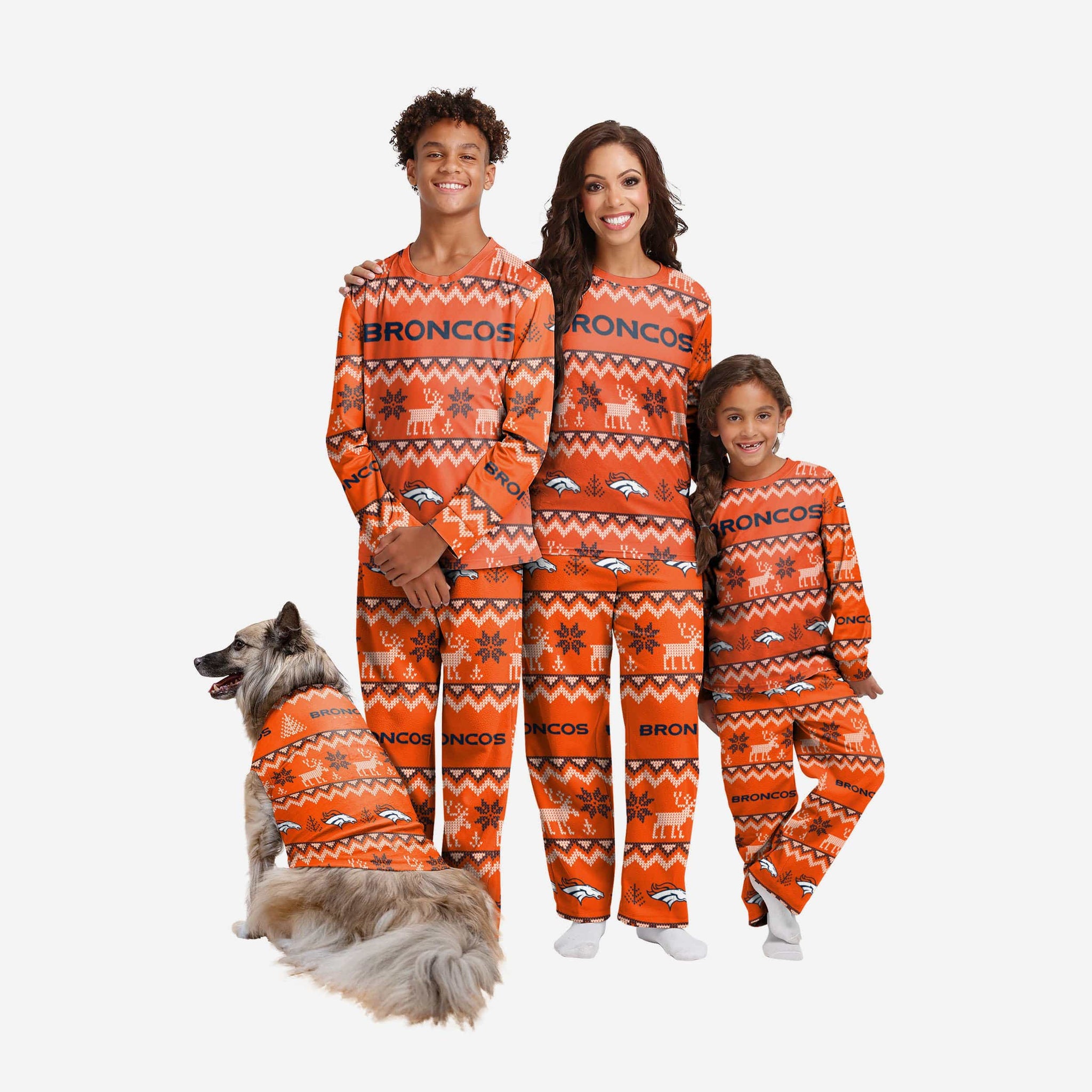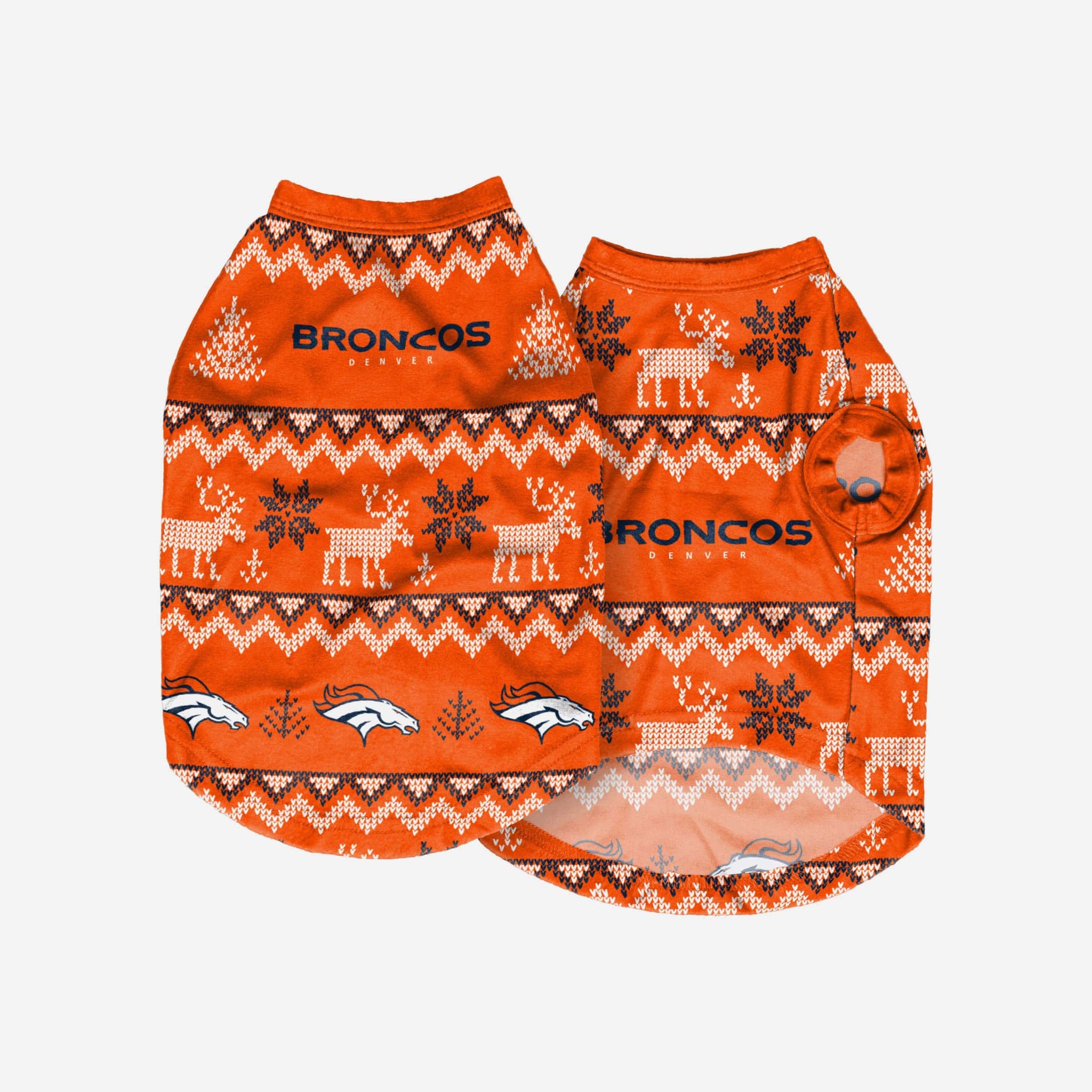 Show off your pet's holiday spirit with this dog sweater! Your good boy (or girl) will love this Denver Broncos Dog Family Holiday Ugly Sweater so much, they'll be saying WOOF BARK AWOOO (that's THANK YOU in pup language). Don't forget to match your canine's sweater with a set of matching holiday pajamas!