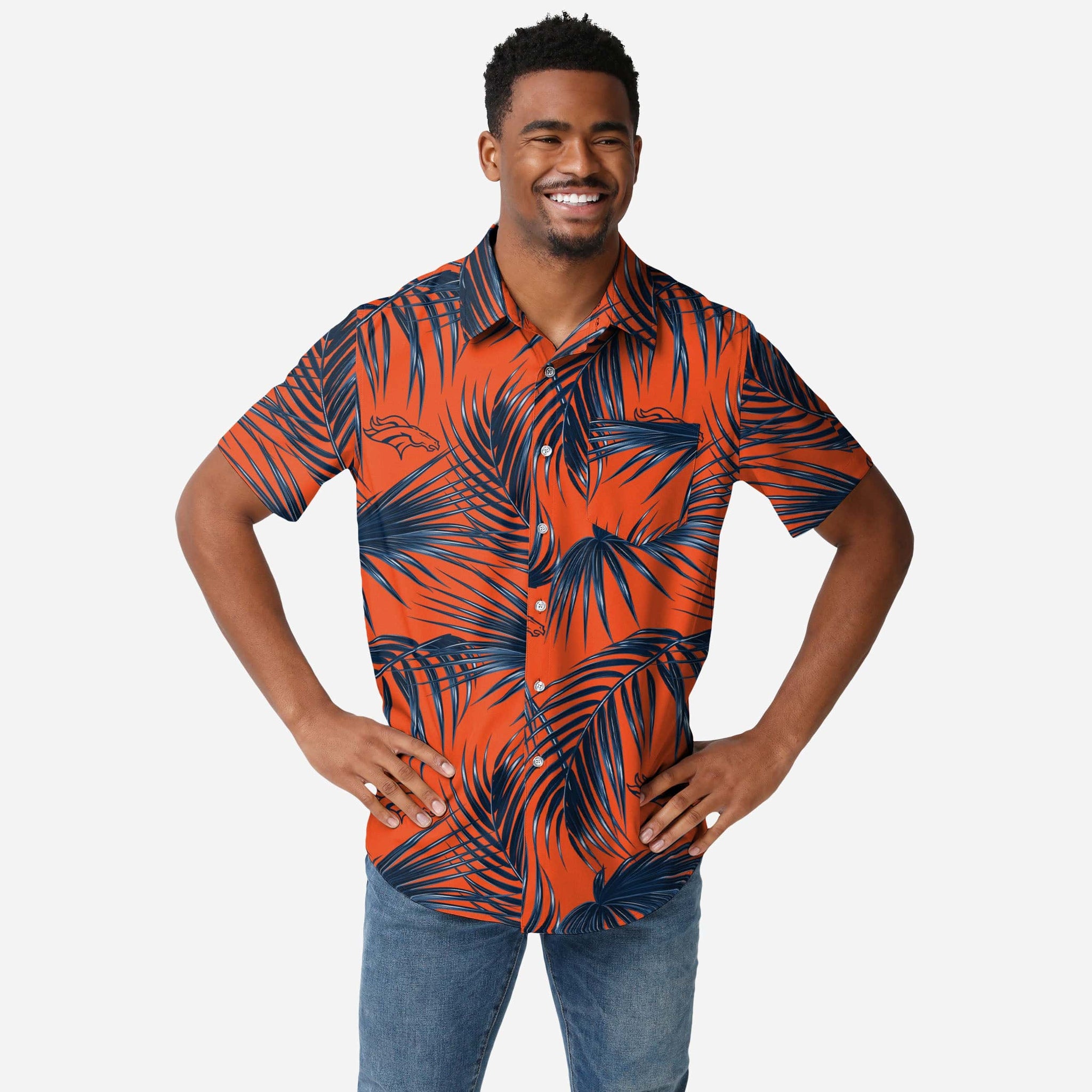 Say "Aloha" to your must-have fan fashion style. With this Denver Broncos Hawaiian Button Up Shirt, you'll be the freshest fan at any tailgate, pig roast, family reunion, or office holiday party.