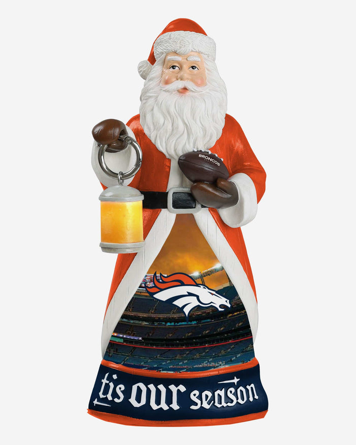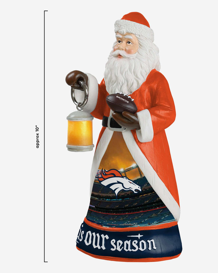 Santa is here to light the way to holiday team spirit! Everyone will know 'tis OUR season when you've got this Denver Broncos Santa Figure with Light Up Lantern on display!