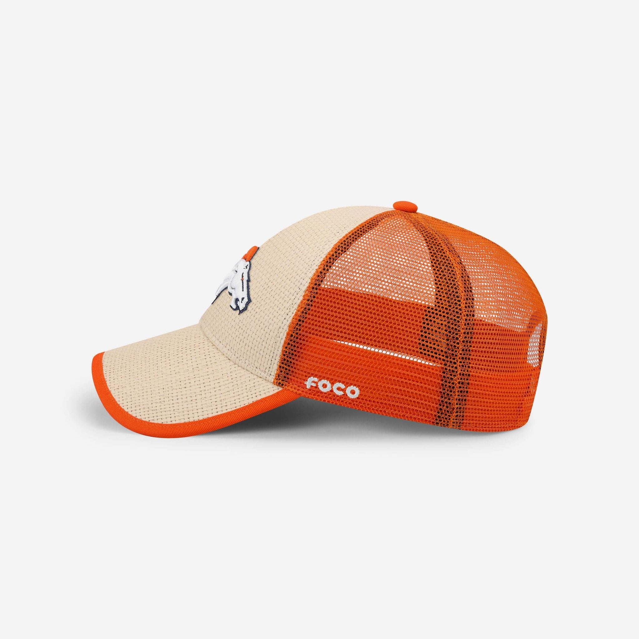Whether you're behind the wheel of a big rig or in the stands at the game, this Denver Broncos Straw Trucker Cap is just the thing for your outfit. Featuring an embroidered team logo display, a wordmark display, and an unstructured design with a curved visor and high crown, you’ll be all set to play the role of trucker and fan. Plus, the mesh panels and adjustable snapback snap closure makes this hat perfect for any adventure.