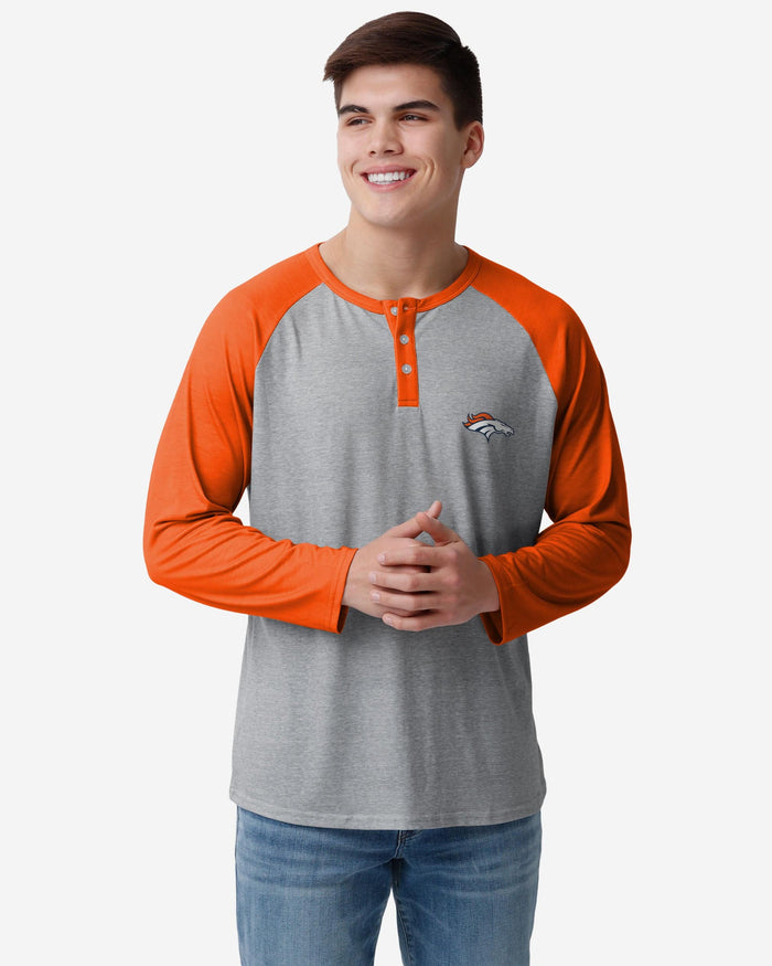 Denver Broncos Team Logo Gray Long Sleeve Henley FOCO - FOCO.com