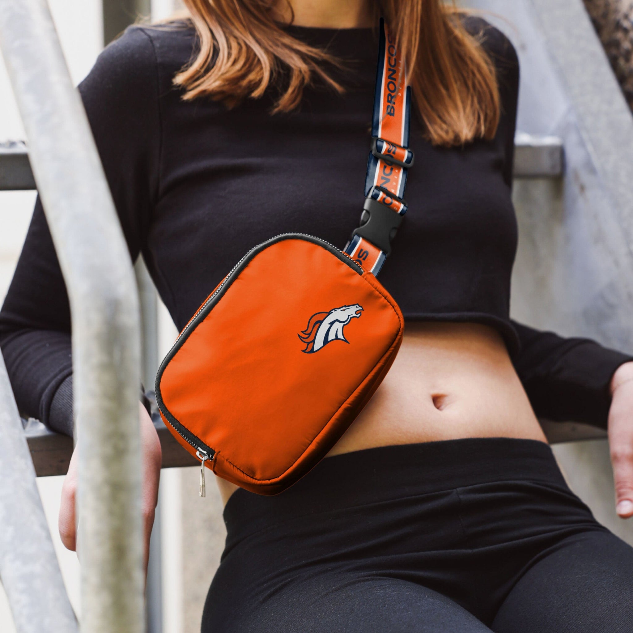 Keys. Wallet. Team spirit. Yep, you've got everything you need right here in this Denver Broncos Team Wordmark Crossbody Belt Bag, whether you're running some errands or running things at the tailgate.