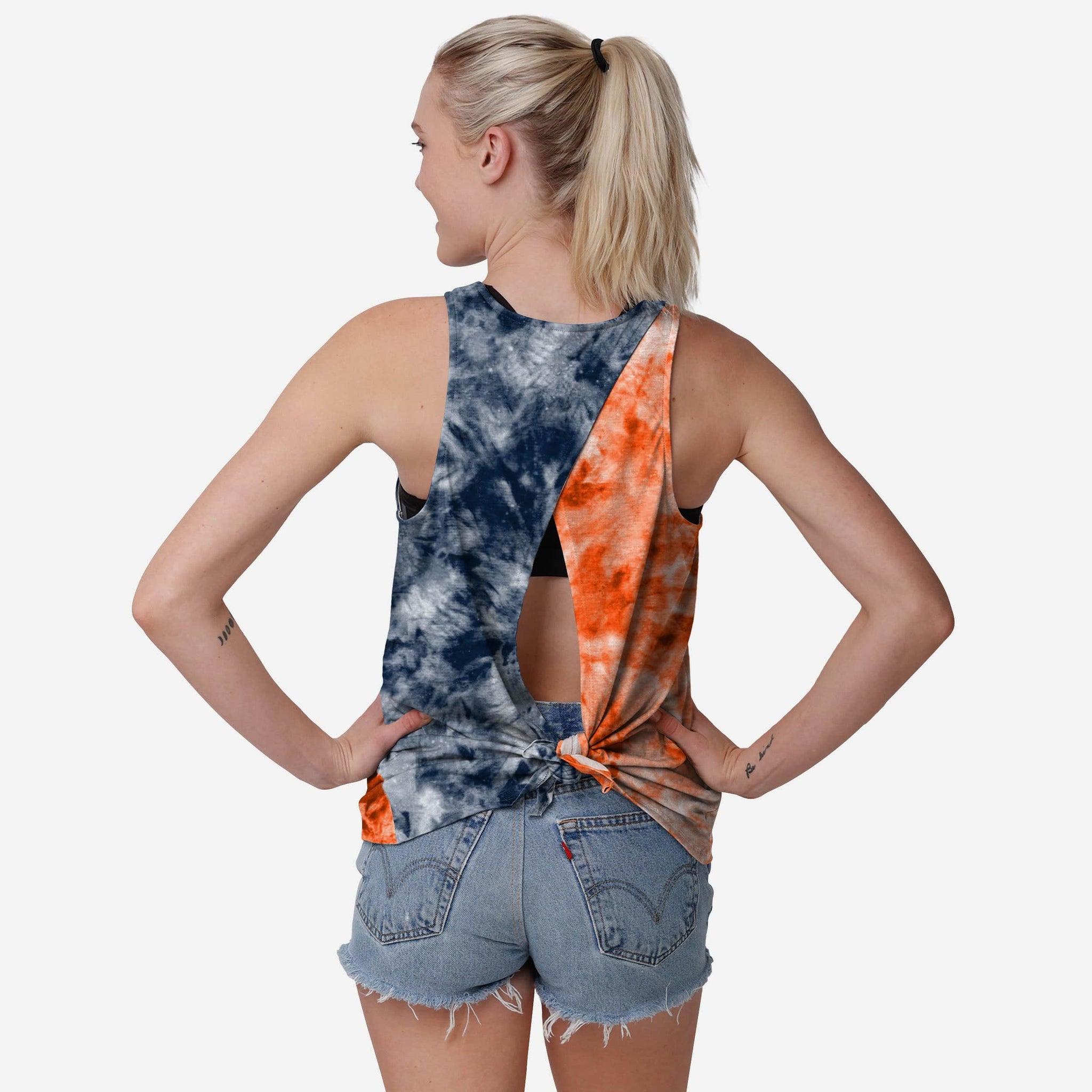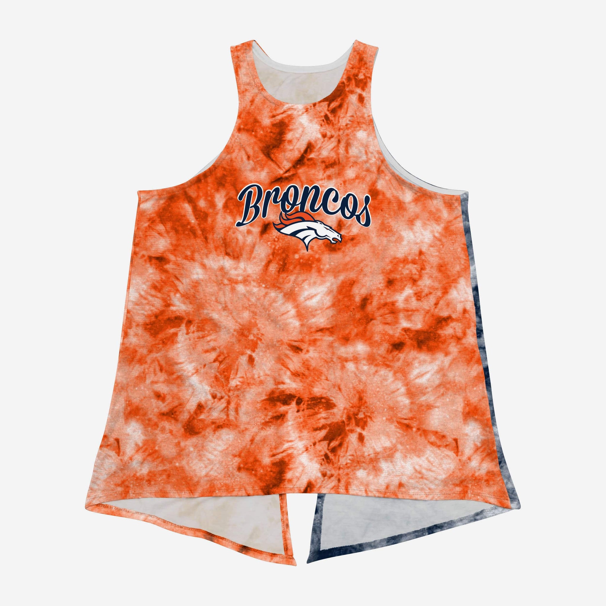 Flip the script and tie some team spirit into your beach day fan fit with this Denver Broncos Women's Script Wordmark Tie-Dye Tie-Breaker Sleeveless Top.