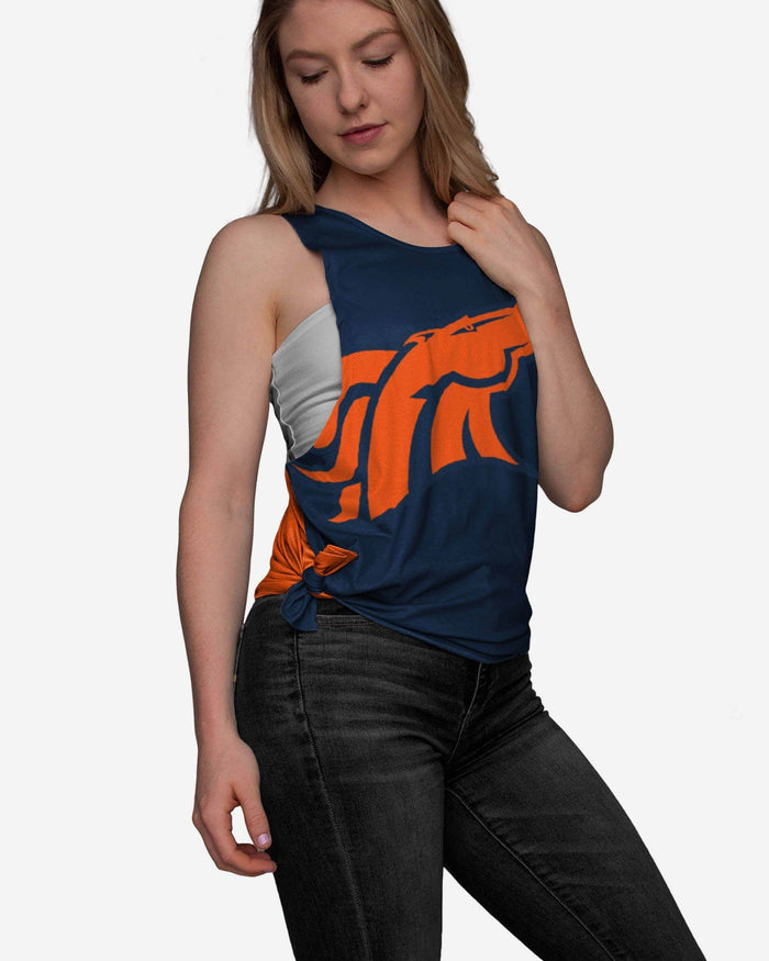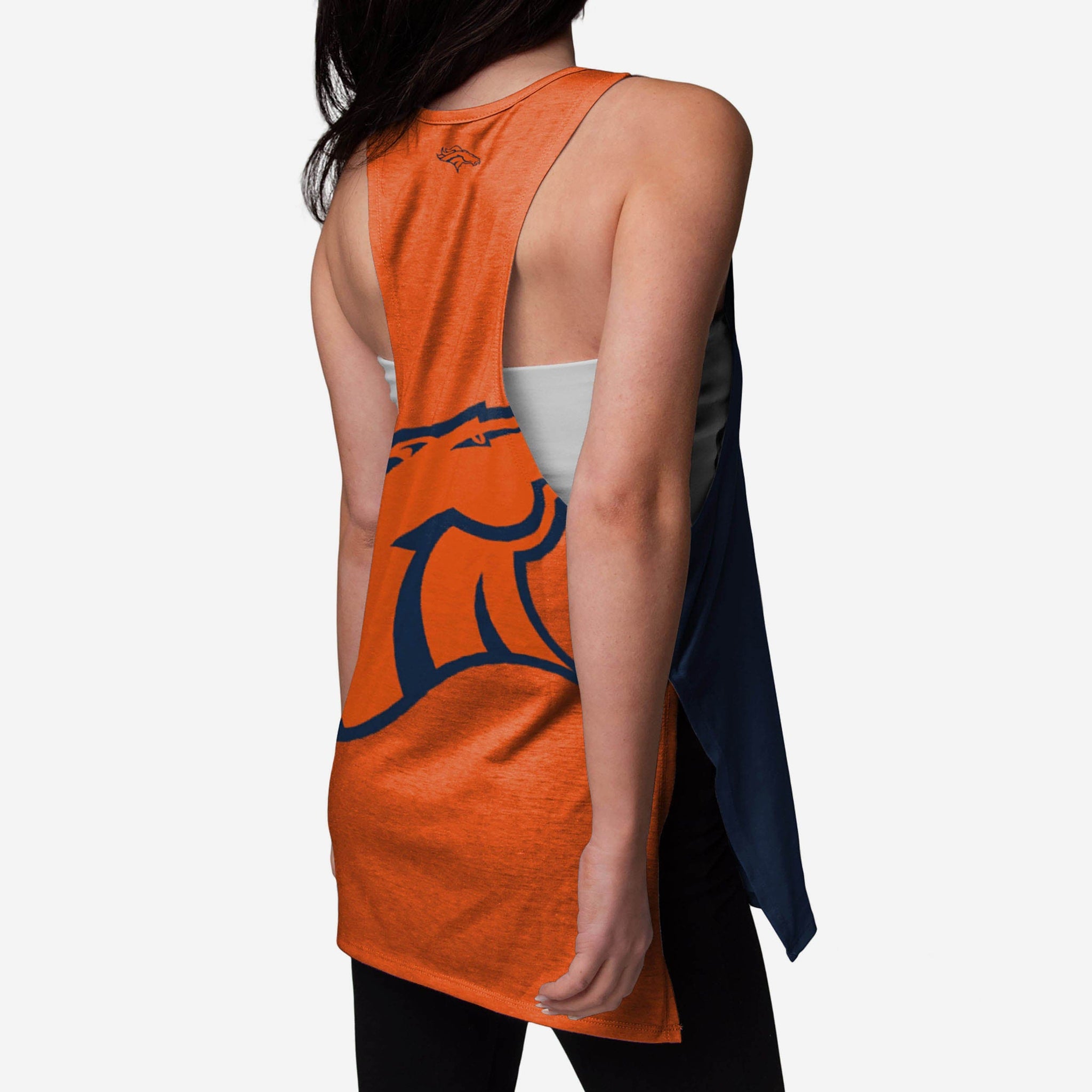 Bold fans like you need to boldly show off your fandom. That's where this Denver Broncos Side-Tie Sleeveless Top comes in. It has your team colors on display on the front and the back, because two ways to show off your team spirit are better than one.