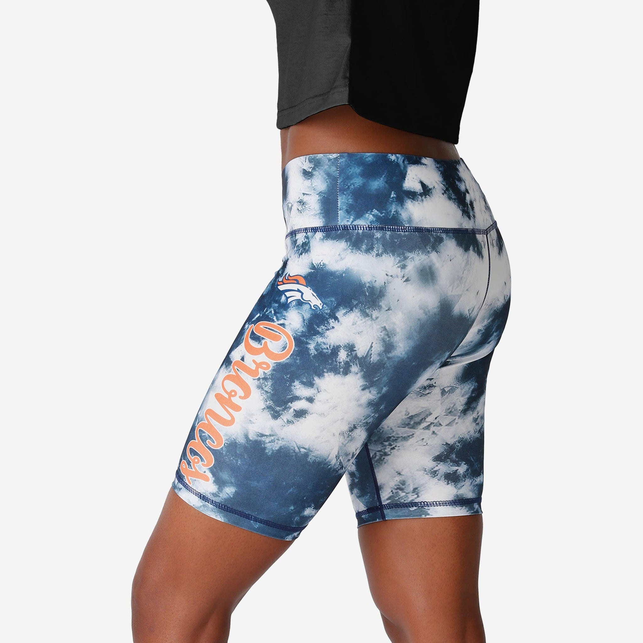 Workout checklist: Your protein shake, your exercise app, and your team spirit! Make sure you've got a whole lot of that last one with these Denver Broncos Women's Team Color Tie-Dye Bike Shorts.
