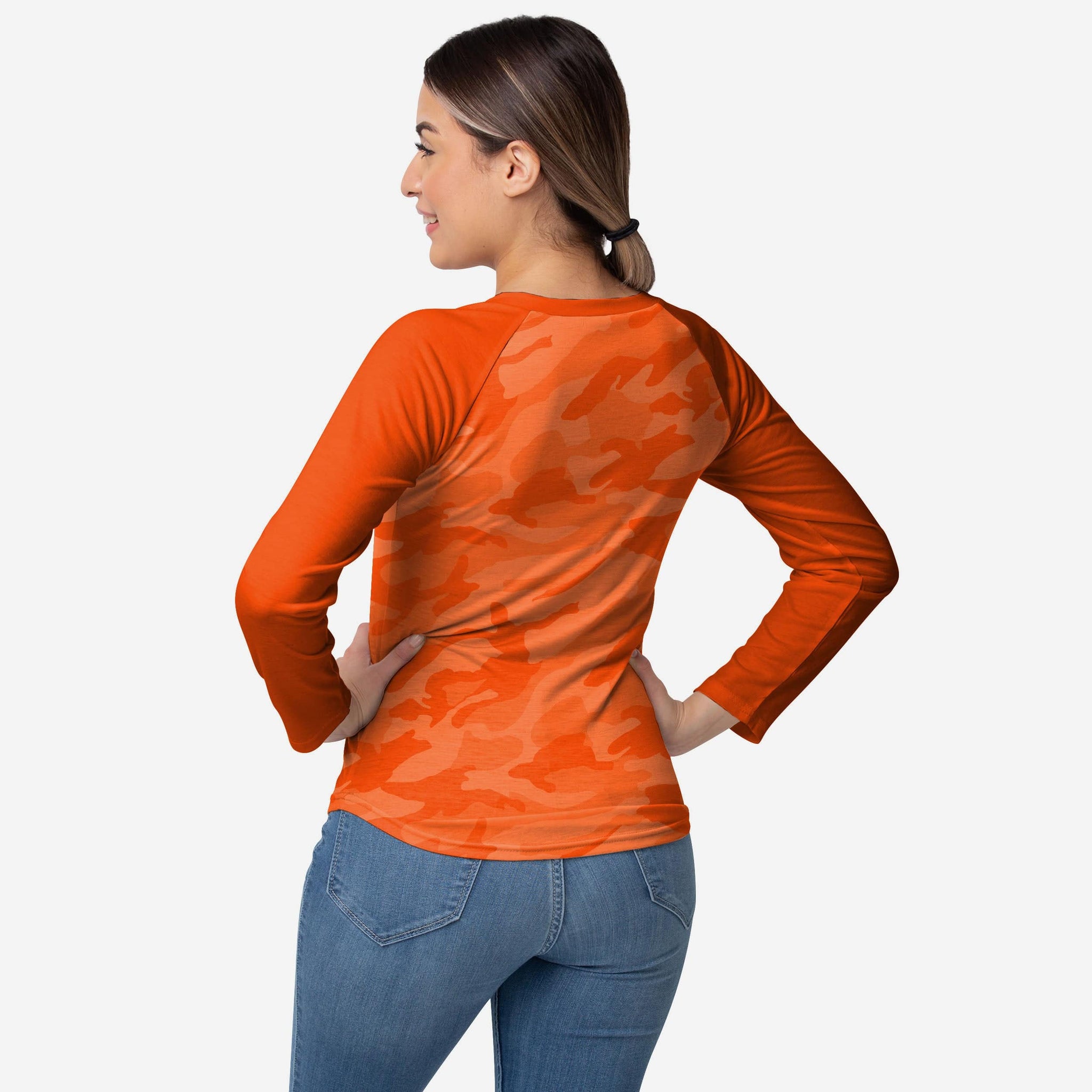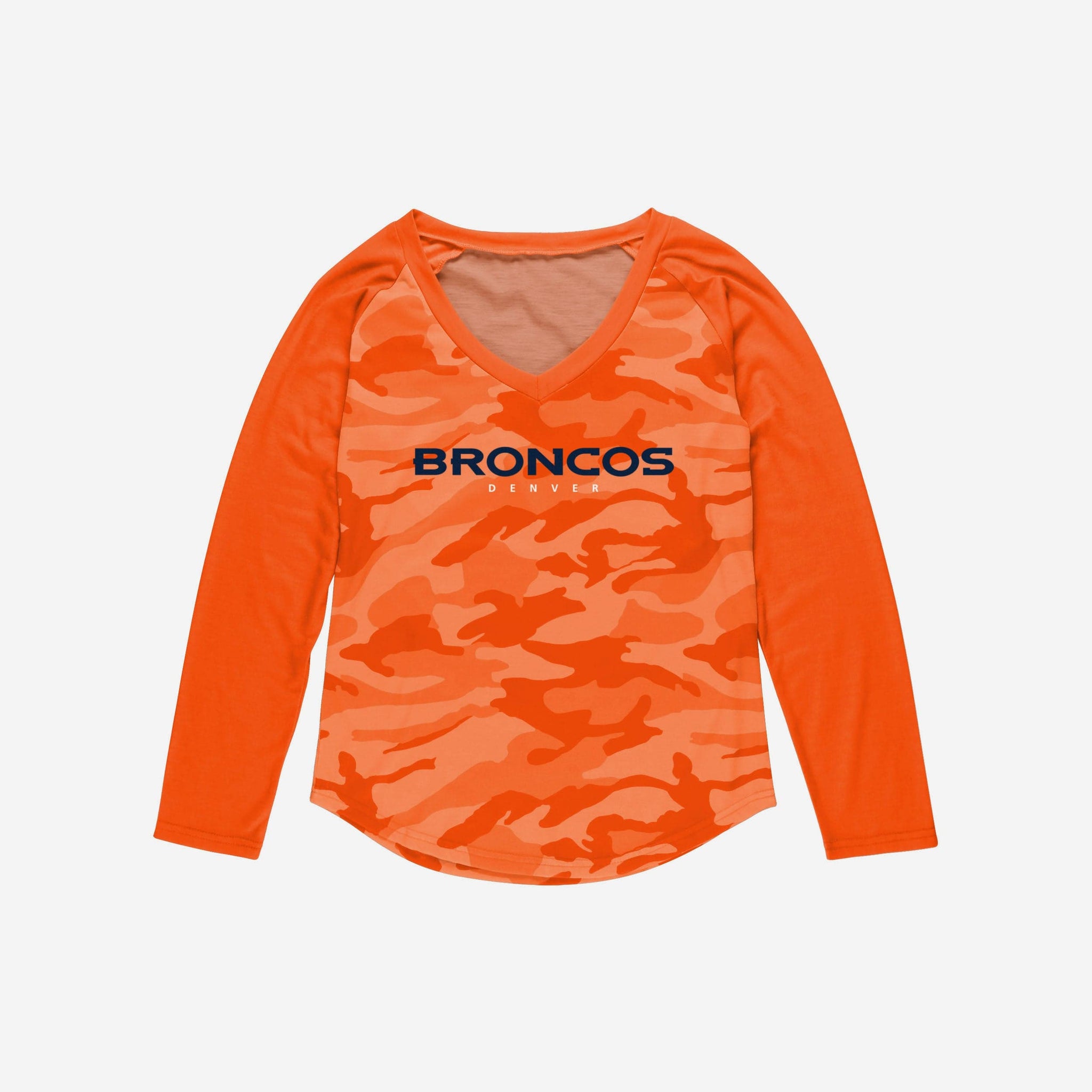 Despite its sleek camouflage design, when you're rocking this Denver Broncos Women's Wordmark Tonal Camo Raglan T-Shirt, you won't blend in with the crowd - You'll stand out.