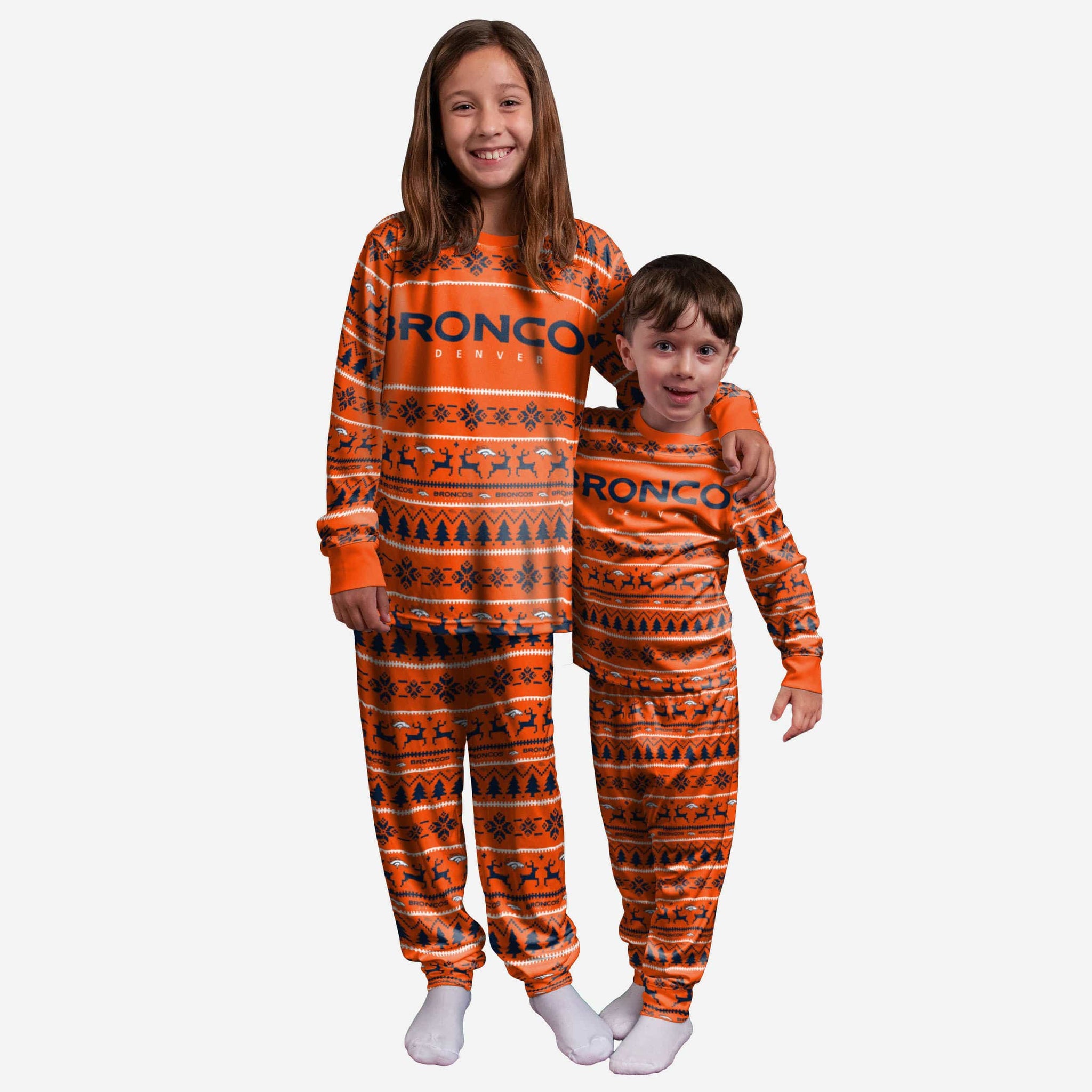Get some matching family pajamas to turn your good night's sleep into a great night's sleep. You won't want to miss these kids' team pajamas. These youth PJ's are comfortable and show off your team spirit in the form of some sweet youth jammies. Introducing Denver Broncos Youth Family Holiday Pajamas. Don't forget to take your holiday photo with the family wearing matching Christmas pajamas.
