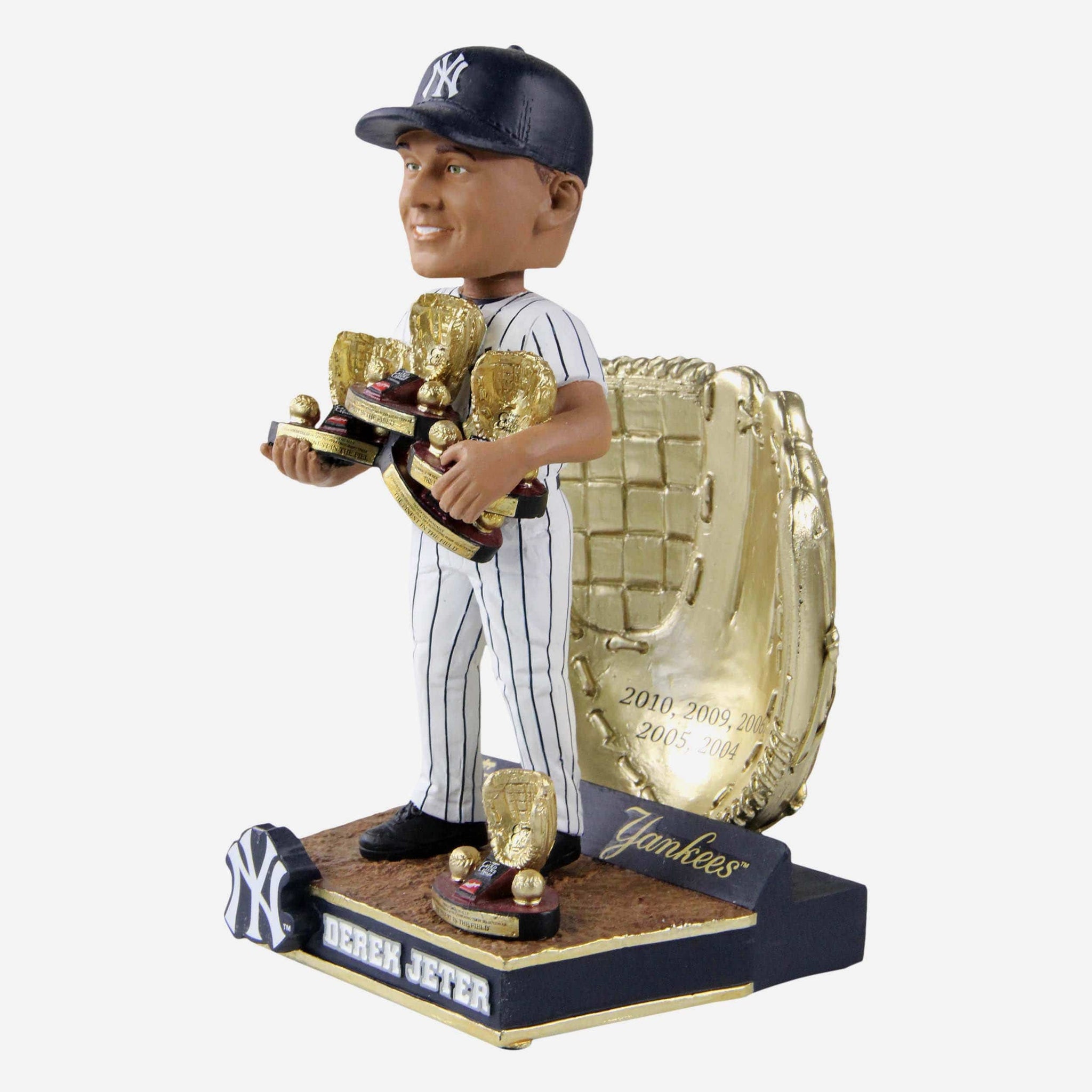 Your collection is about to be as gold as The Captain's glove. Commemorate two decades of greatness and show off your pinstripe pride with this Derek Jeter New York Yankees 5x Gold Glove Award Bobblehead!