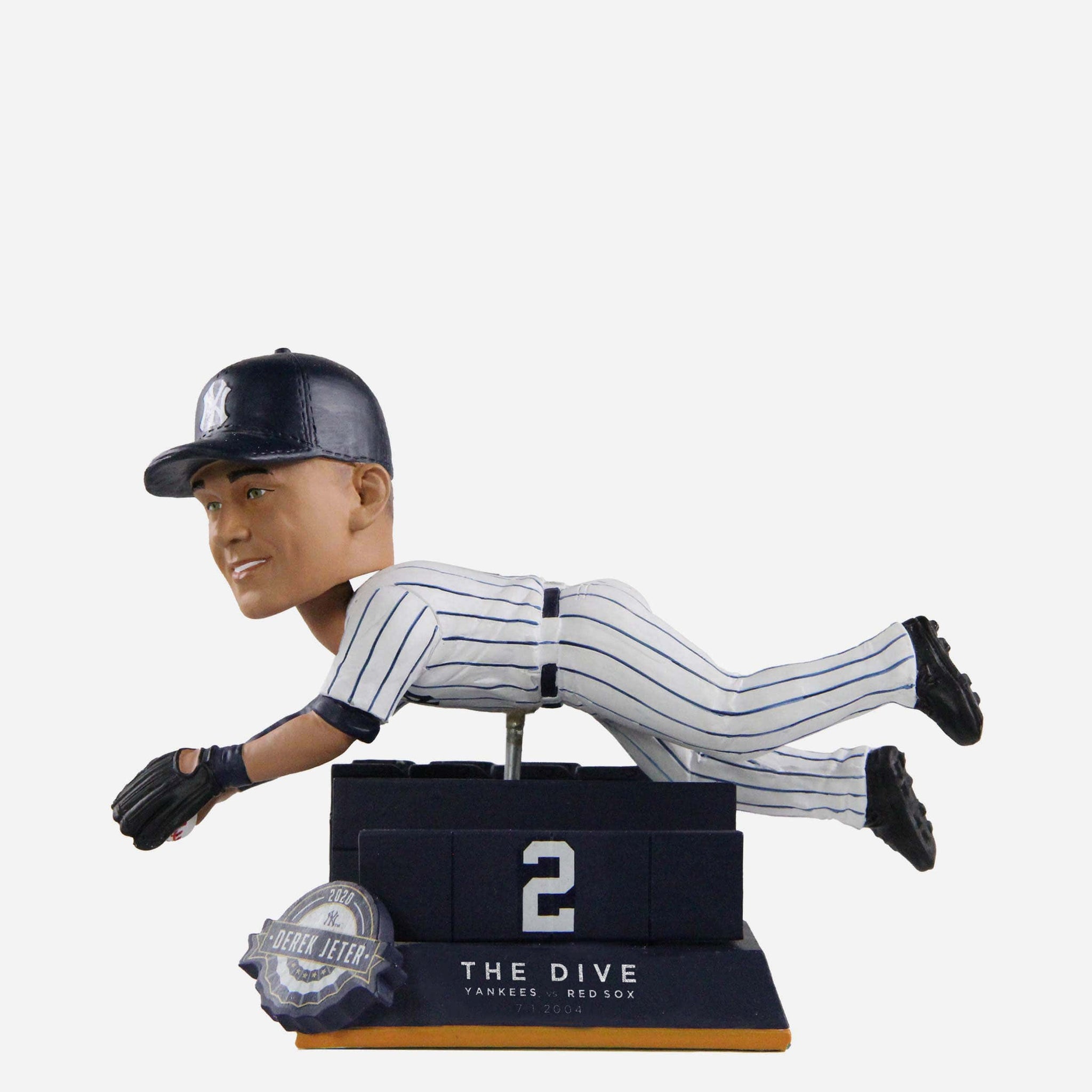 July 1st, 2004. Yankee Stadium. Top of the 12th inning. A pop fly to shallow left field becomes one of the most famous plays in baseball history, thanks to The Captain! Immortalize one of No. 2's most iconic moments with this Derek Jeter New York Yankees The Dive Bobblehead!