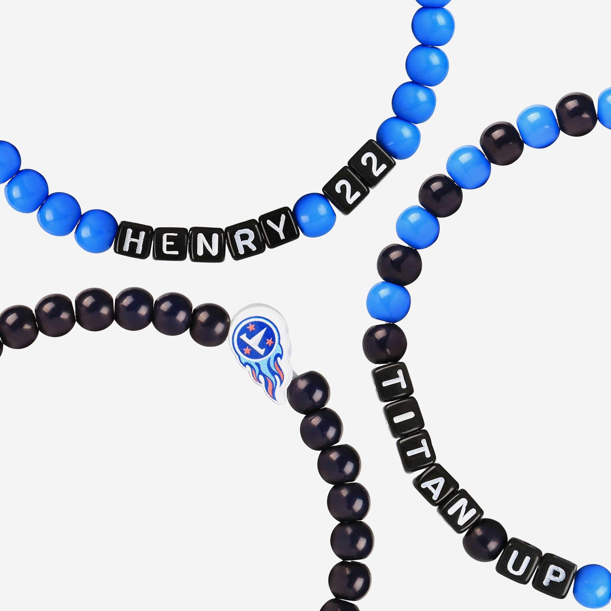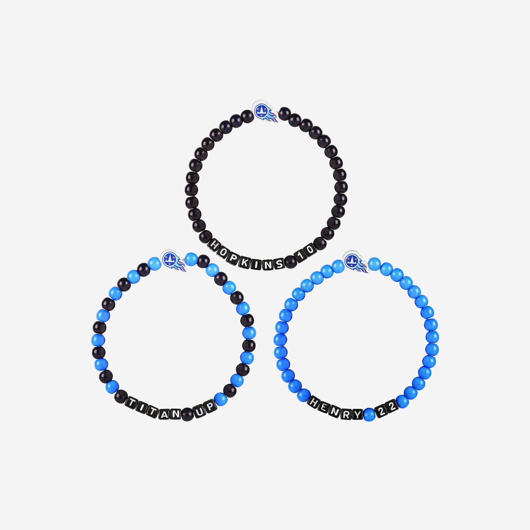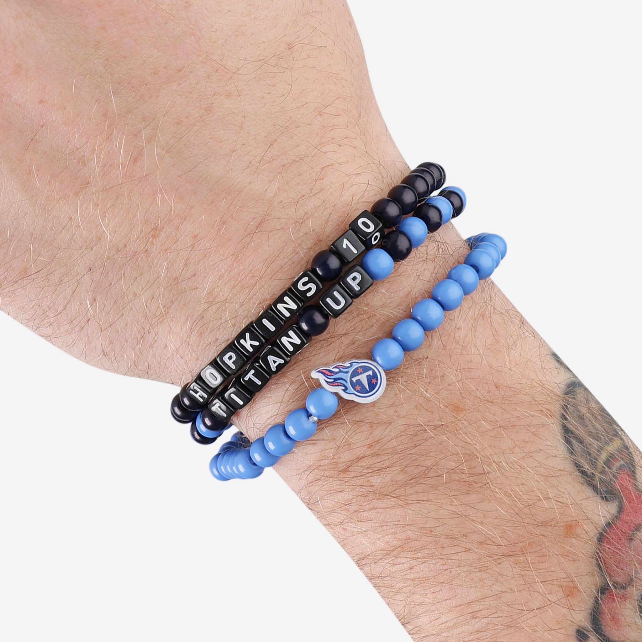 A whole new way to rep the team in style is here. Step up your fan fashion sense with this Derrick Henry & DeAndre Hopkins Tennessee Titans 3 Pack Player Beaded Friendship Bracelet. These matching friendship bracelets have an all-over team-colored design and team logo displays, which makes them the perfect way to show your support for the Tennessee Titans on gamedays and every day in between.