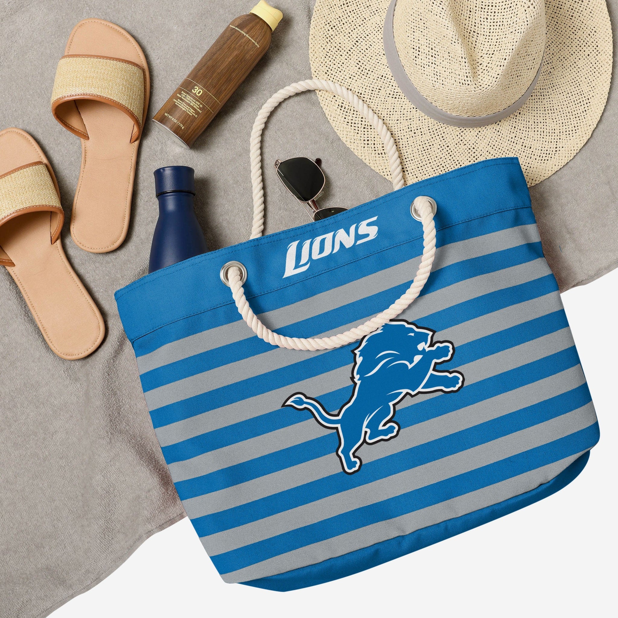 You're a real fan. You've earned your stripes. Now you can show them off AND carry the team with this Detroit Lions Nautical Stripe Tote.