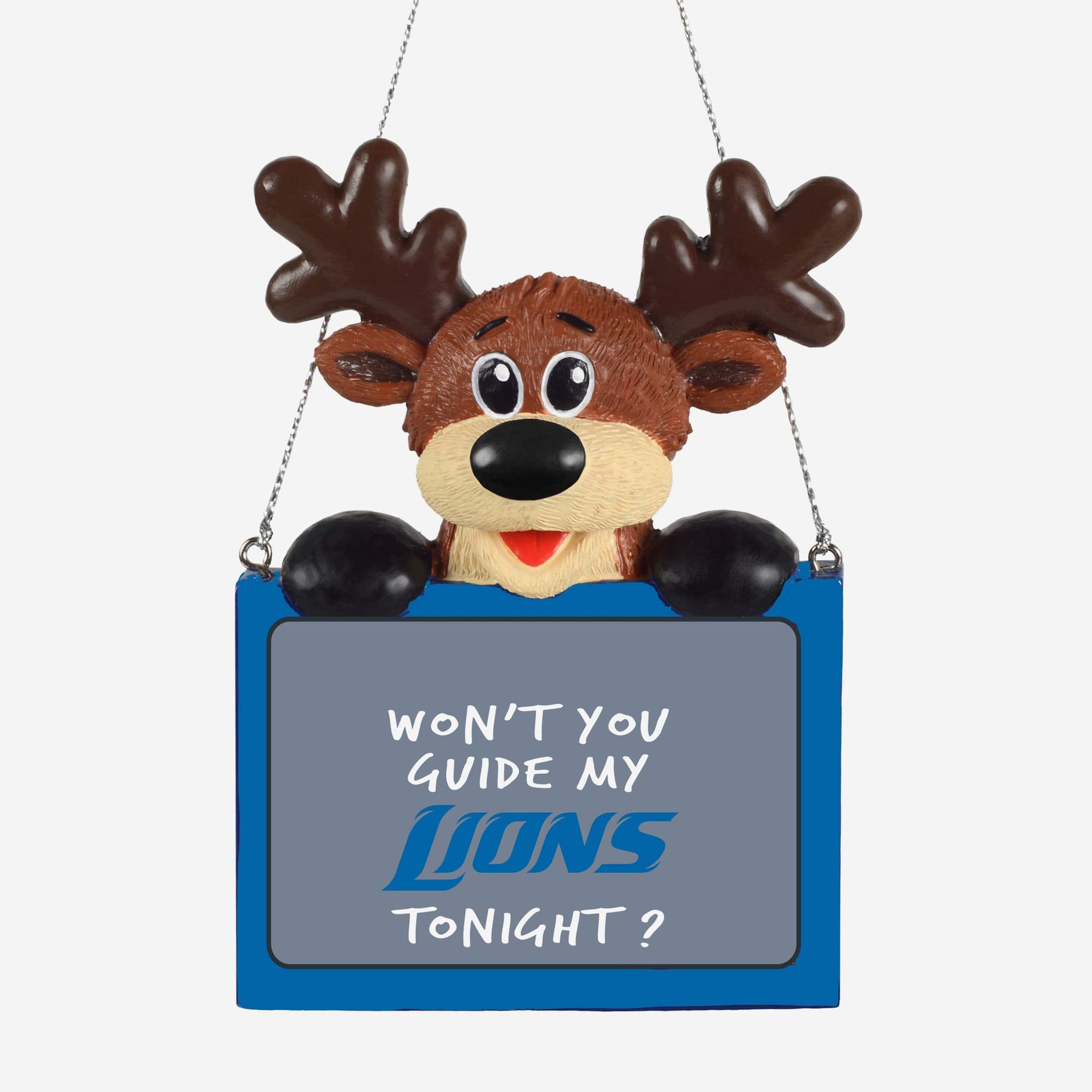 Detroit Lions Reindeer With Sign Ornament FOCO - FOCO.com