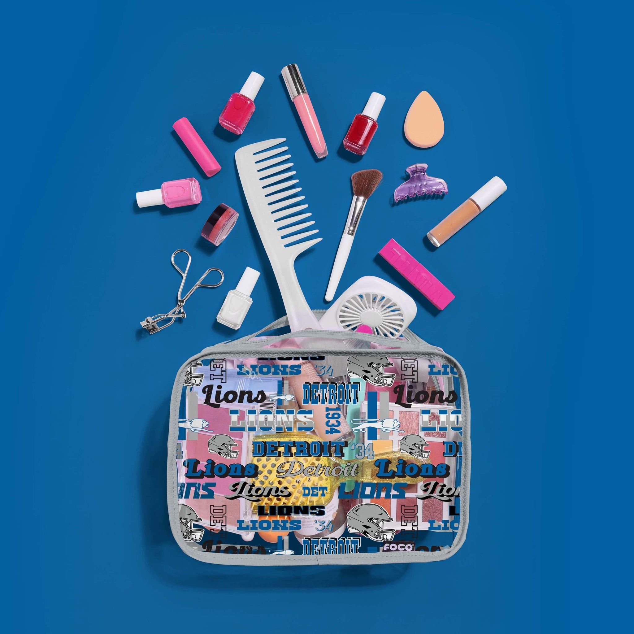 Lipstick. Hair care. Fandom. Get ready to carry it all! Wherever you go, let everyone clearly see which team you root for with a Detroit Lions Repeat Retro Print Clear Cosmetic Bag.