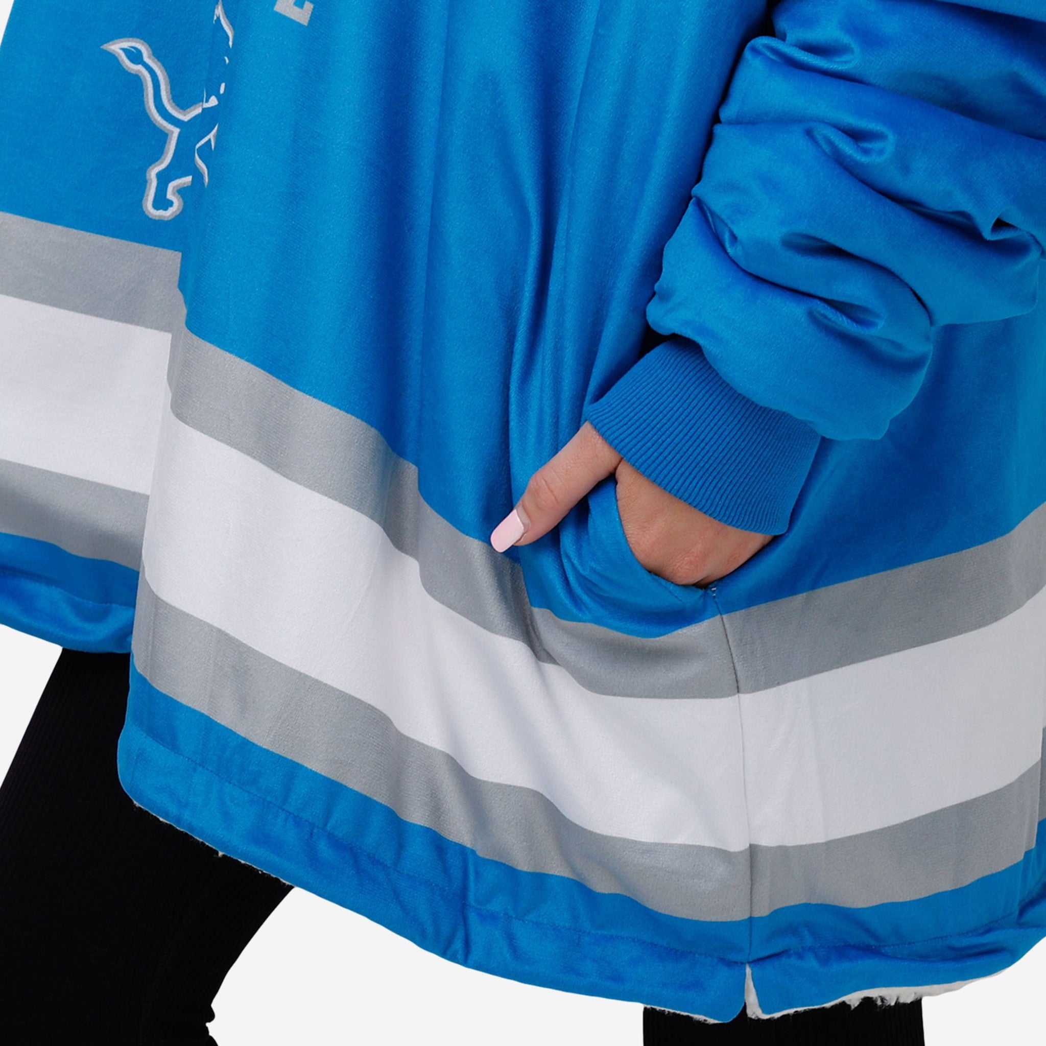 - Hood with team-colored design so you can block the wind (and the haters)