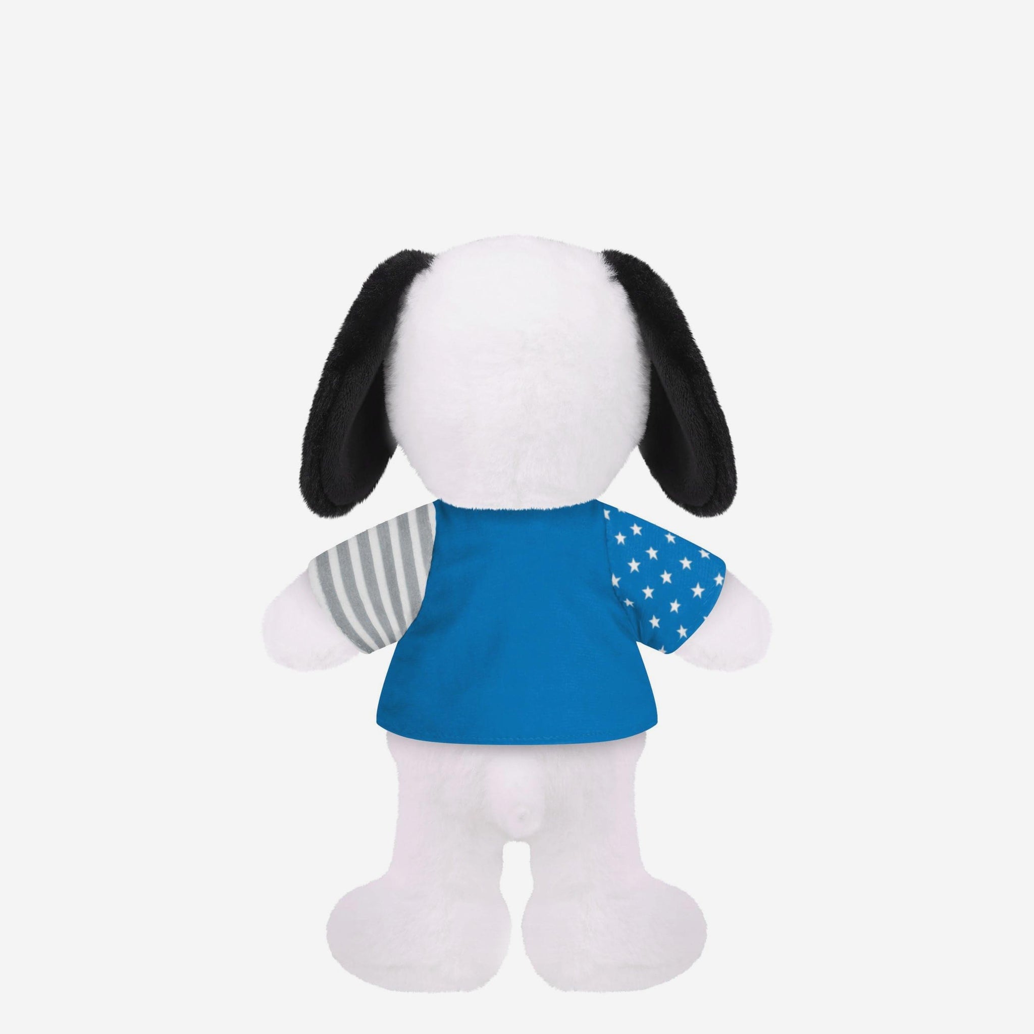 • Plush Snoopy wearing a team jersey with USA flag-inspired design details