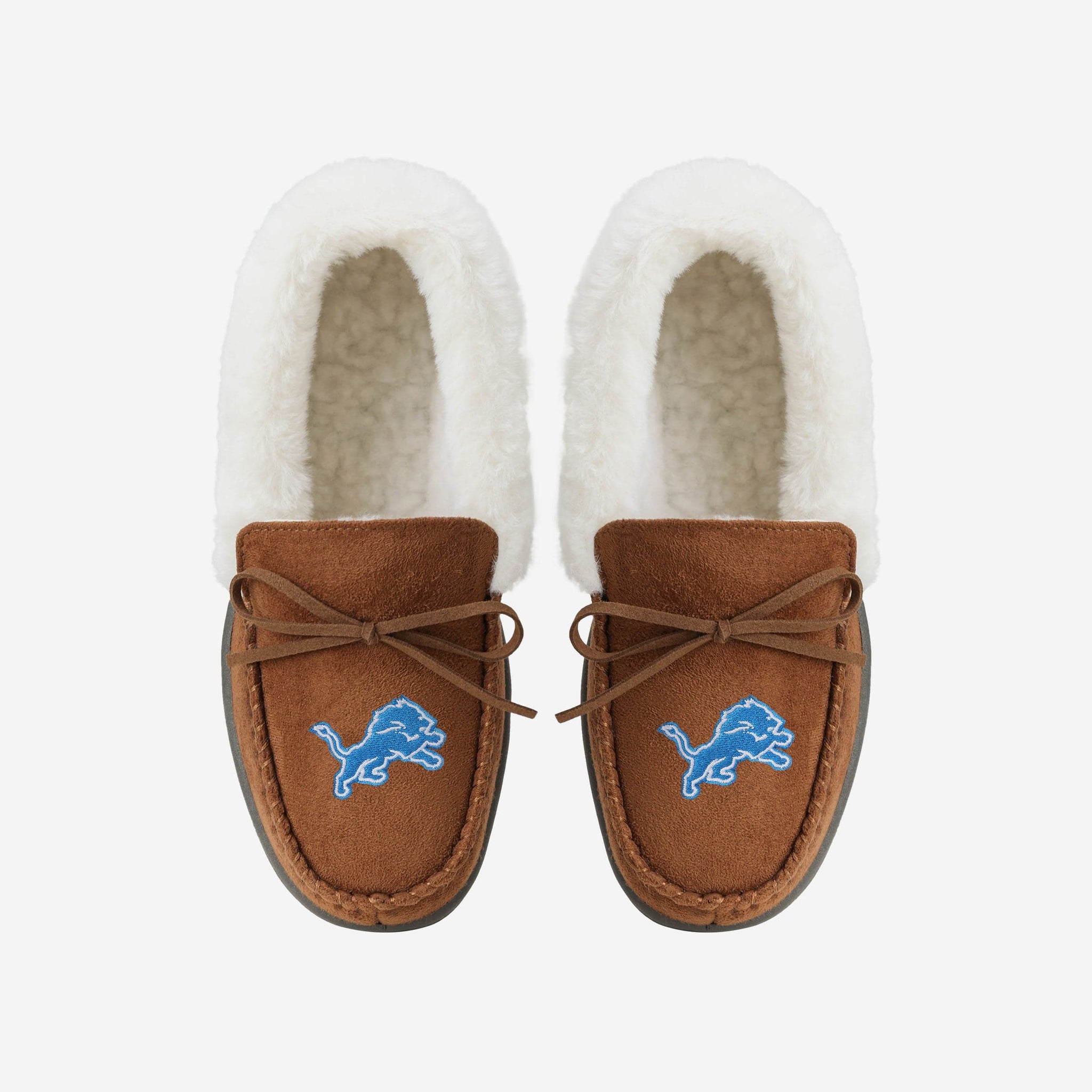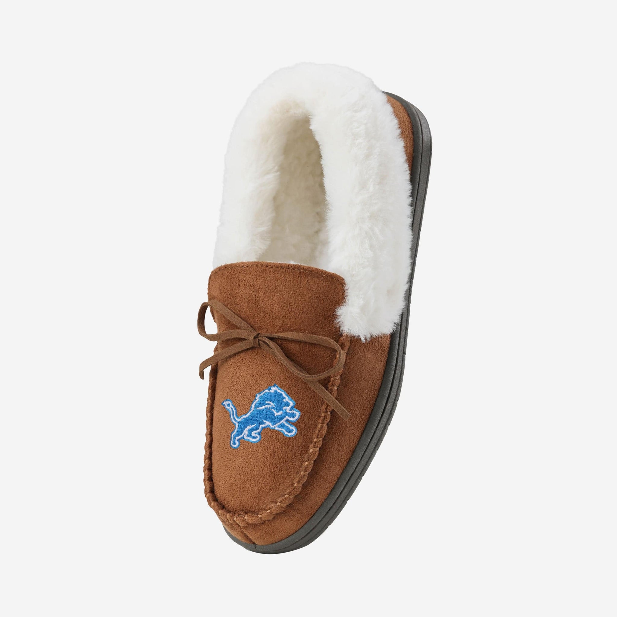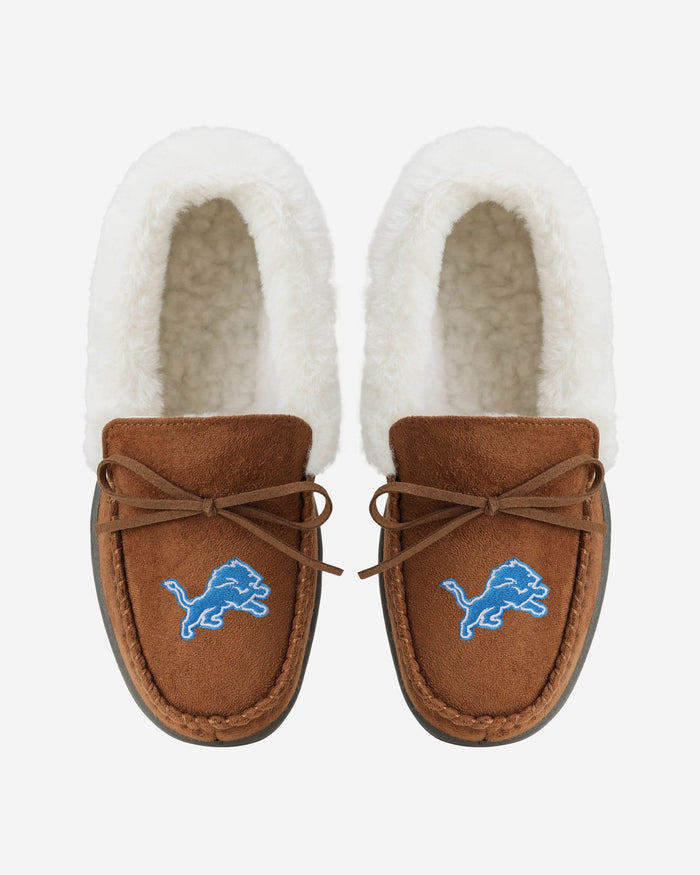 When you rocc these moccs, you can be an MVP on the couch watching TV! Introducing the Detroit Lions Women's Tan Moccasin Slippers!