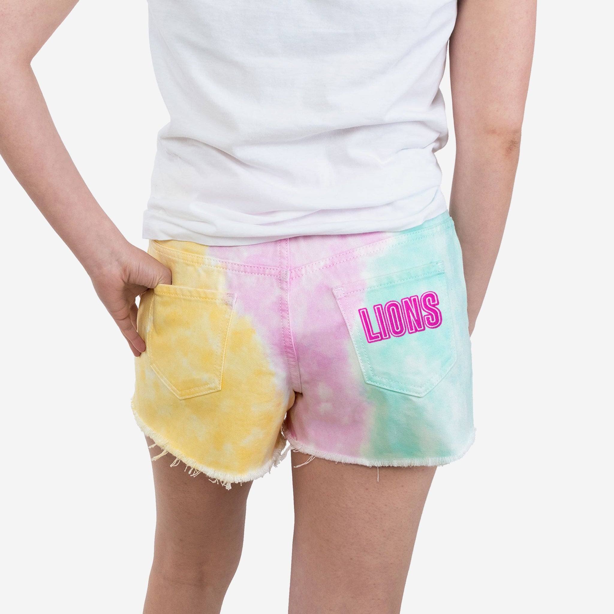 Tired: Blue jean shorts. Wired: TIE-DYE jean shorts! Add a denim delight to your gameday wardrobe with these Detroit Lions Women's Tie-Dye Rush Denim Shorts!