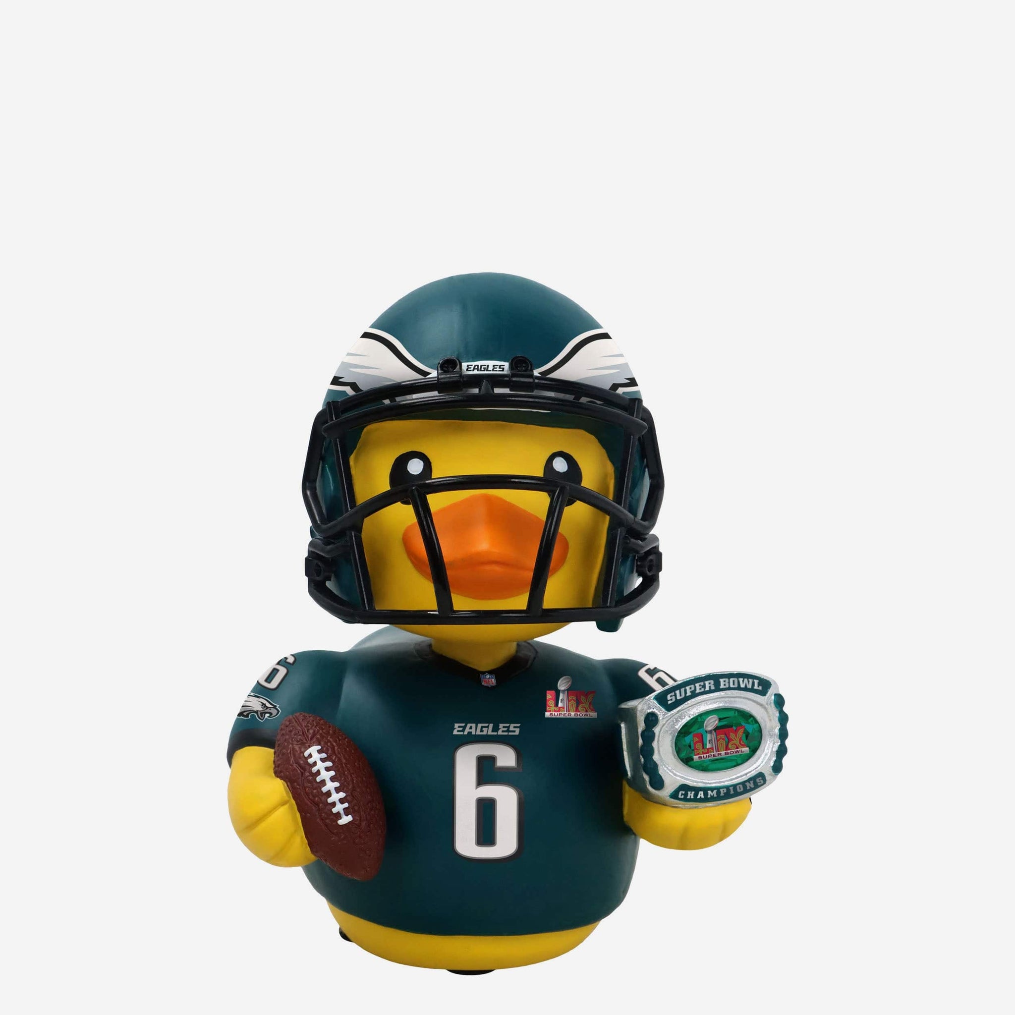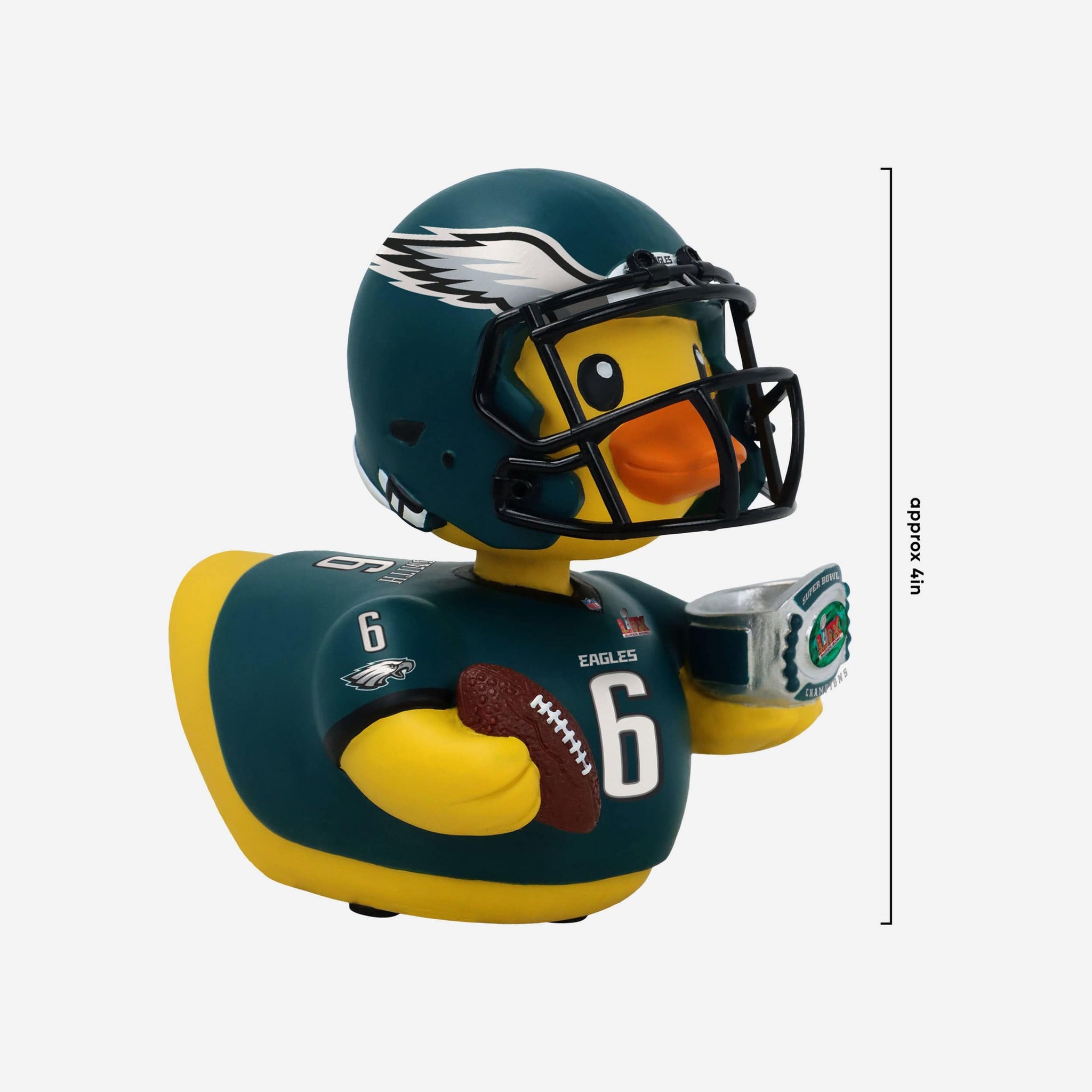 SUPER BOWL CHAMPIONS! Add some feathered fun to your championship celebration with this Devonta Smith Philadelphia Eagles Super Bowl LIX Champions Player Bobble Duck Mini Bobblehead.