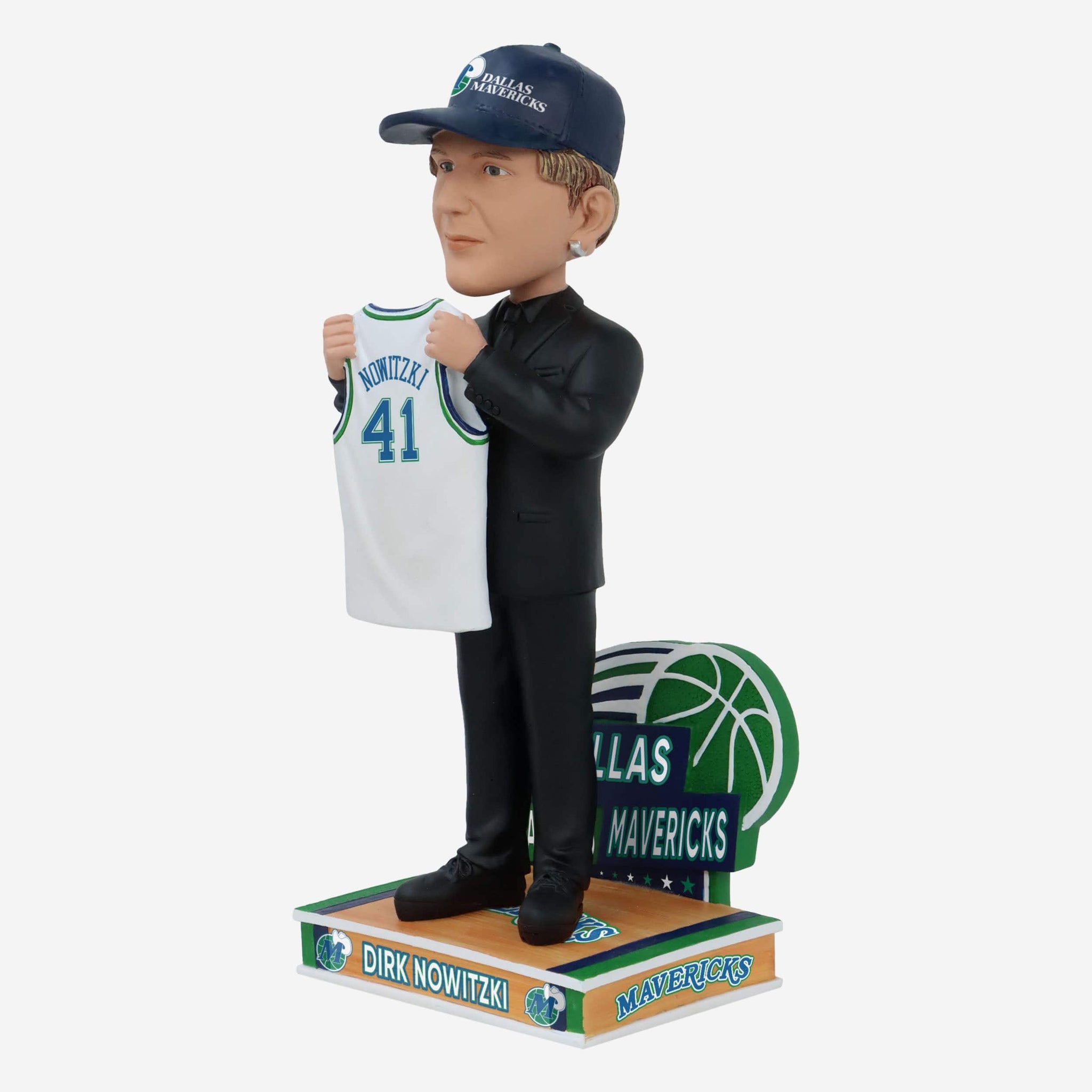 - Portrays Nowitzki wearing a black suit and team draft cap while holding his new team jersey, showing off his new team
