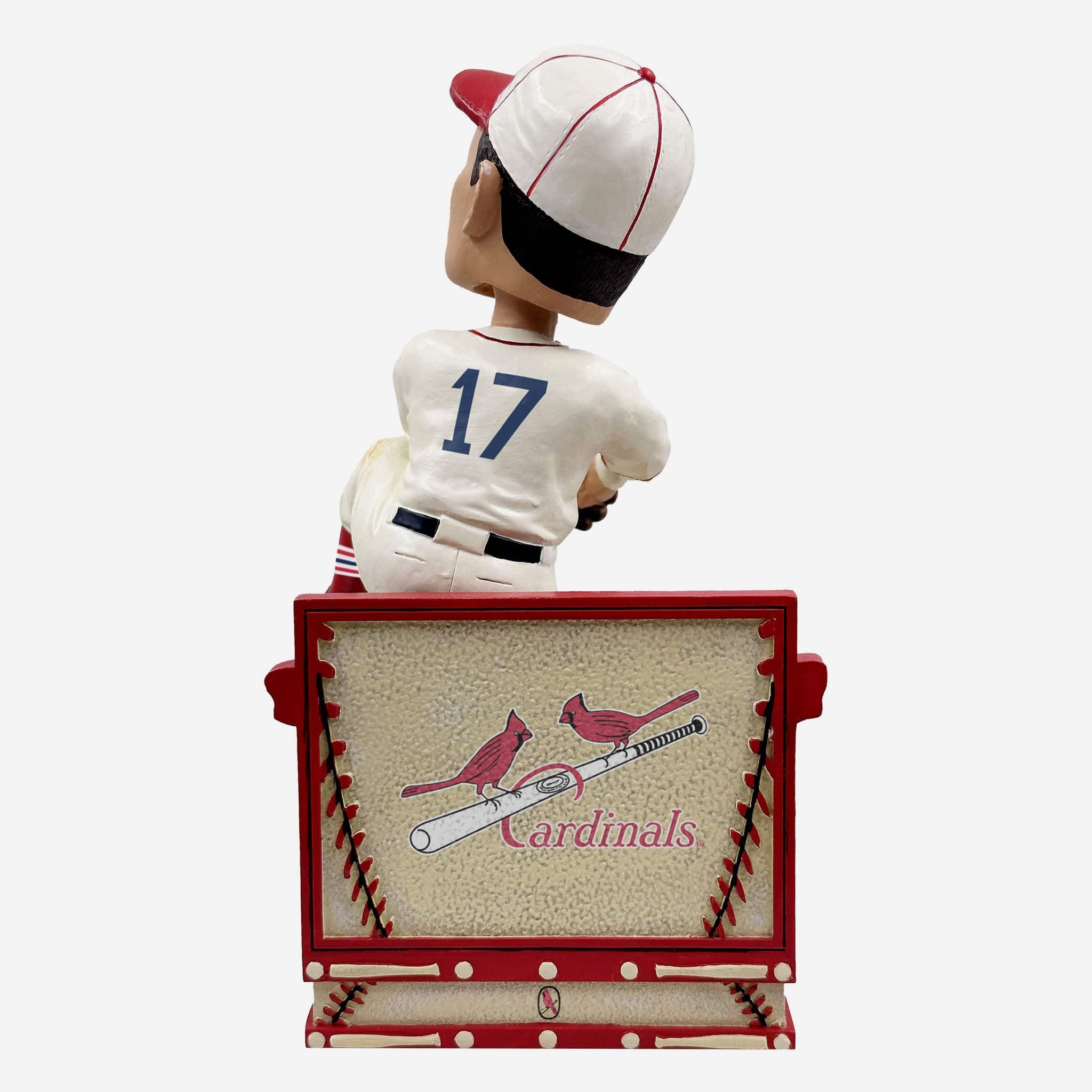 - Thematic, team-colored backdrop and base with baseball stitching accents that will look great in your collection