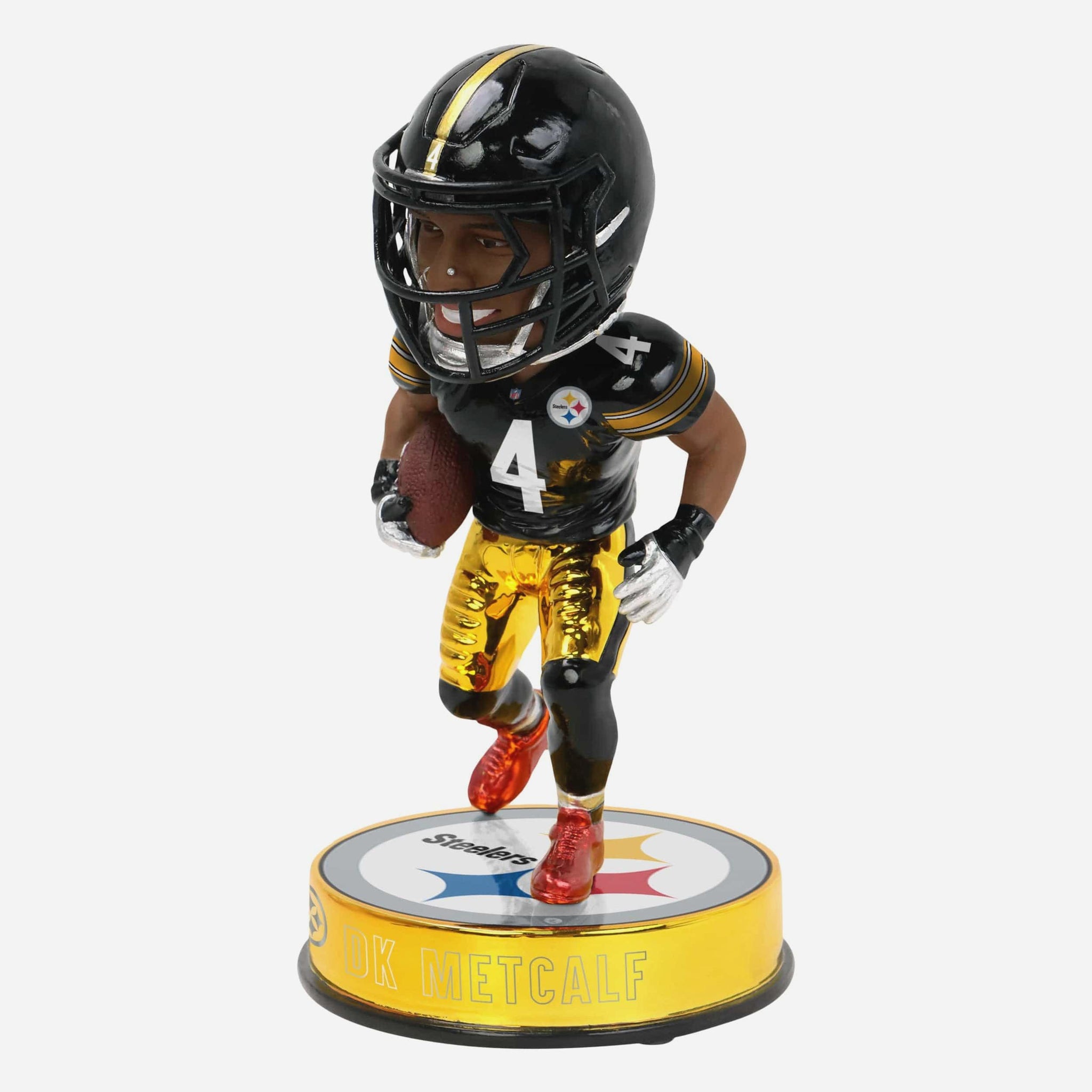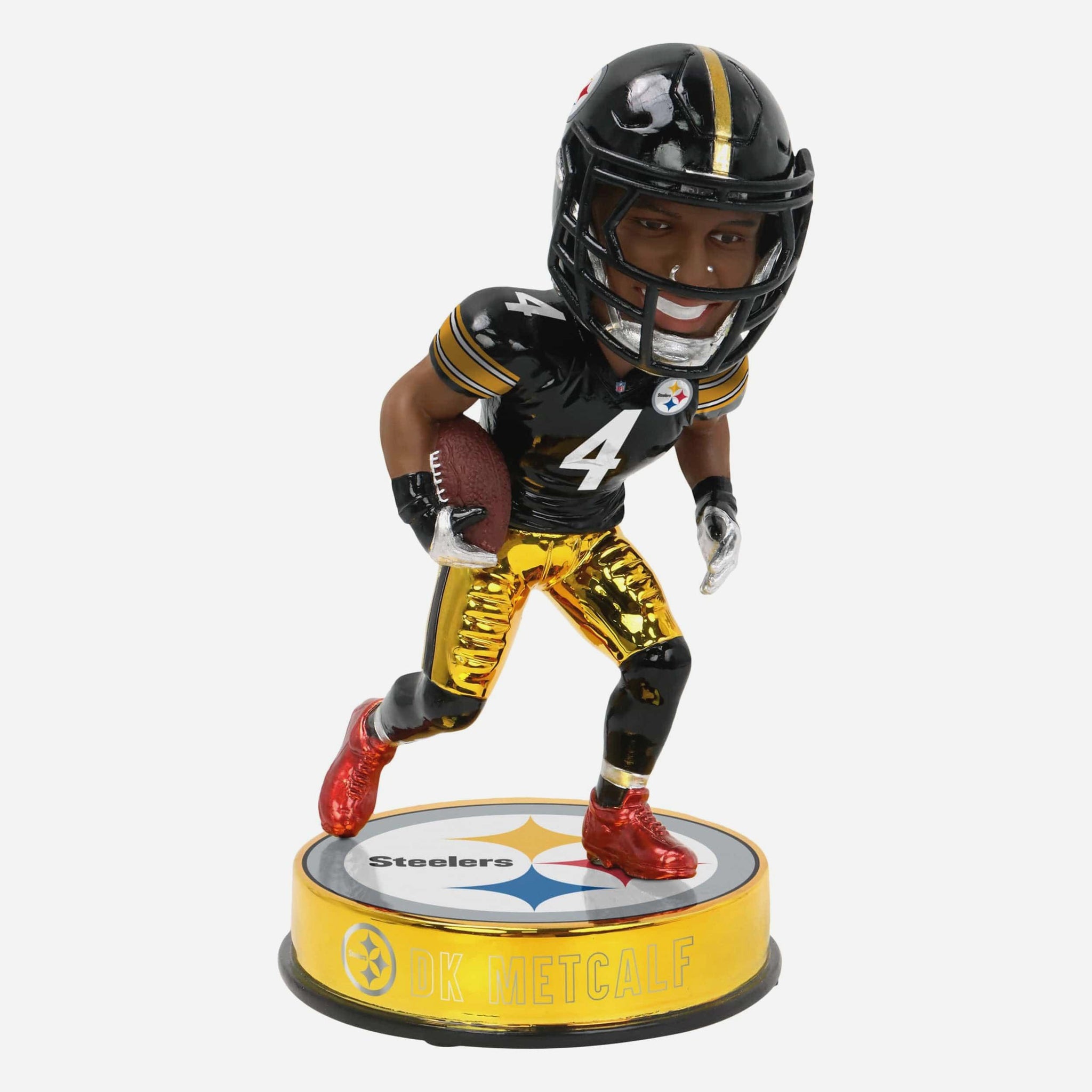 Black and gold just got bolder. Add DK Metcalf’s Electroplate shine to your Steelers collection with this Dk Metcalf Pittsburgh Steelers Electroplate Edition Bobblehead.